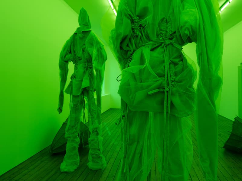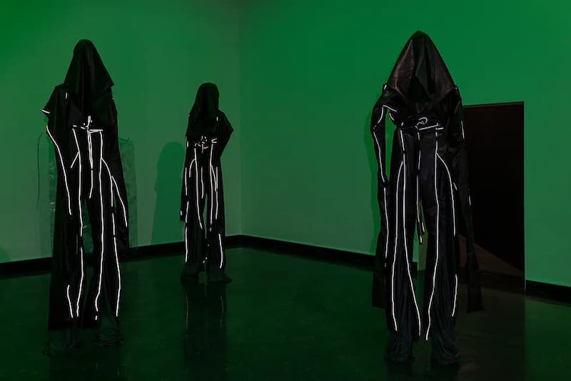 Sandra Mujinga: La luz verde, en origen, viene de la utilización de estudios con pantalla verde para filmar mis vídeos. La pantalla verde se convierte en un marcador de posición para muchas cosas, ya que tiene una función intercambiable. Utilizo el (espacio) verde para pensar en la negritud y el vacío.