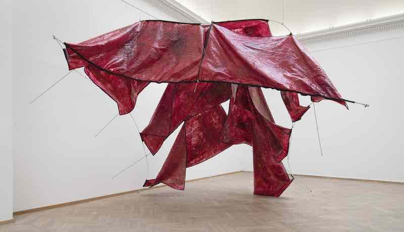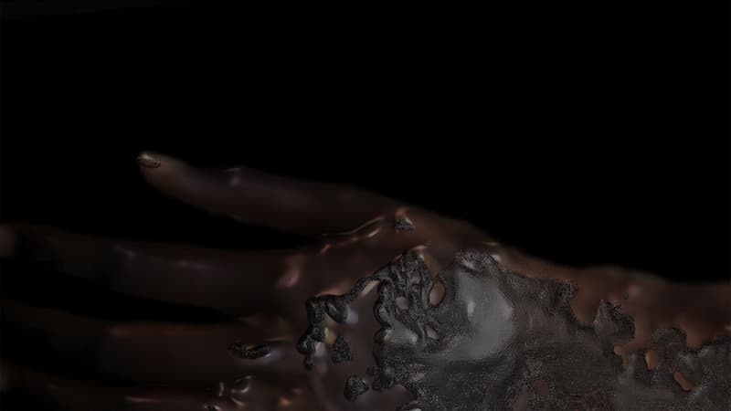 Sandra Mujinga: Mi práctica se basa en la ficción especulativa para investigar y sugerir diferentes estrategias de supervivencia, y muchas veces se inspira en los animales. Lo que hice fue imaginar un cuerpo a través de la escala, volverse invisible a través de la escala. Un cuerpo que fuera tan abstracto como indetectable. Es como utilizar un zoom extremo sobre un cuerpo como una ventaja, de modo que de tanto ampliar se pierde la noción del cuerpo.