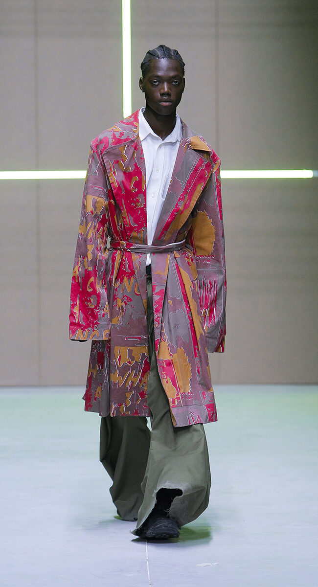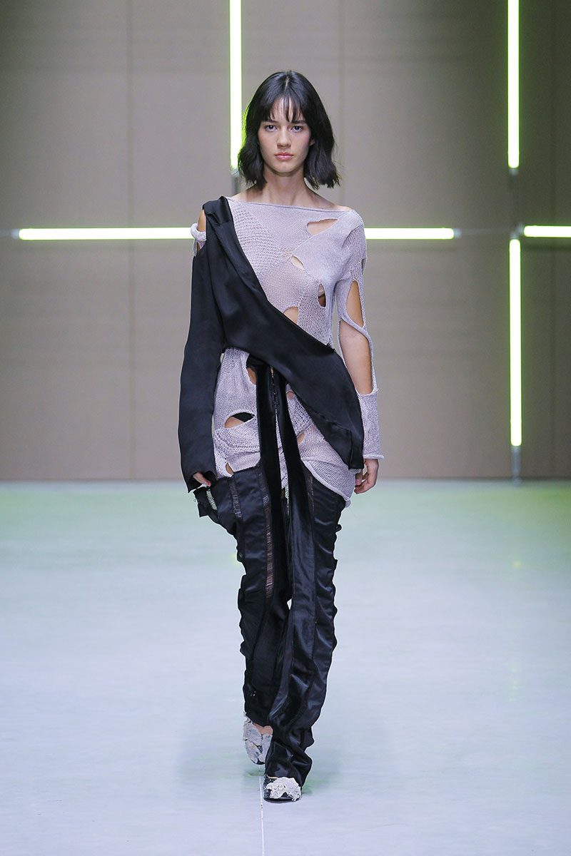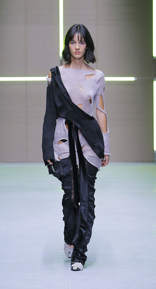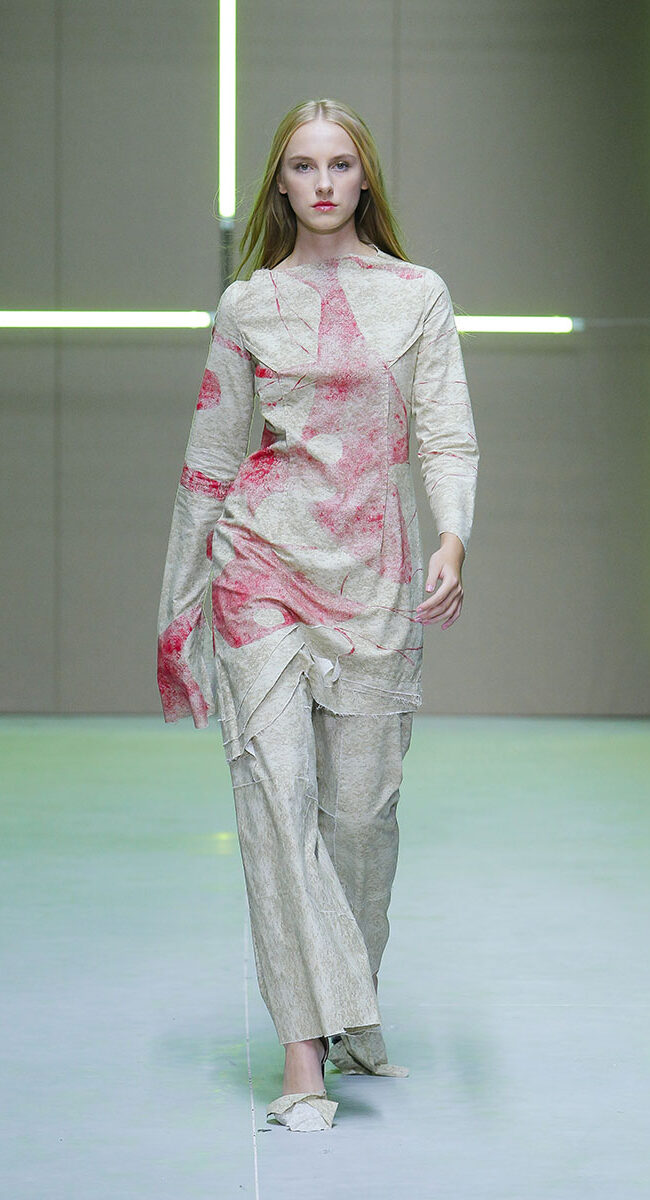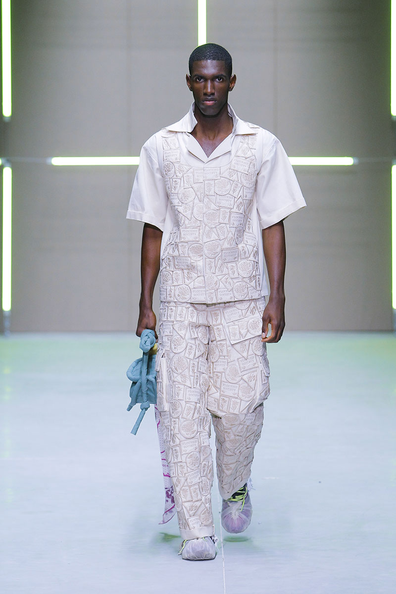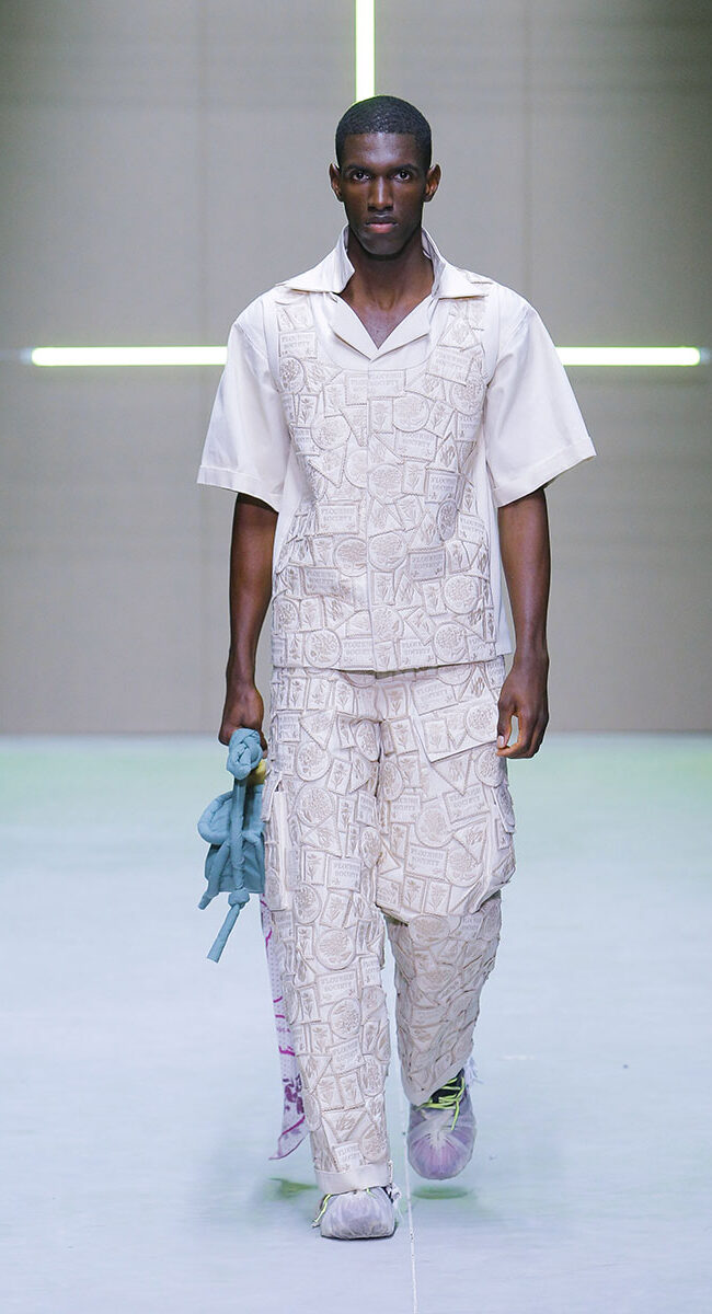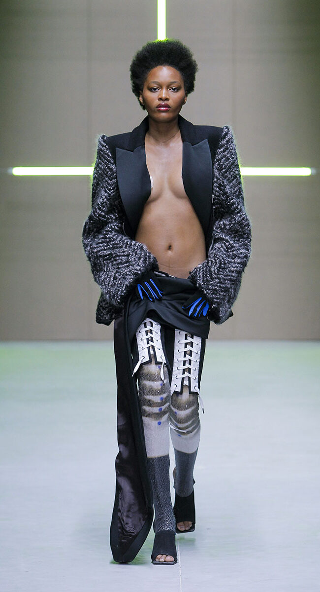 A través de sus diseños muestra cómo serían los uniformes de un “nuevo mundo” sin civilización, con calles llenas de ruinas y basura. Darya visualiza cómo la ropa vuelve a su función original de proteger y calentar. Las voluminosas y complejas piezas que presenta una de las cinco finalistas de Sangue Novo ModaLisboa SS23 se construyen a través de retales rescatados, mantas, cortinas y toallas. Es hora de abrazar el nuevo mundo.