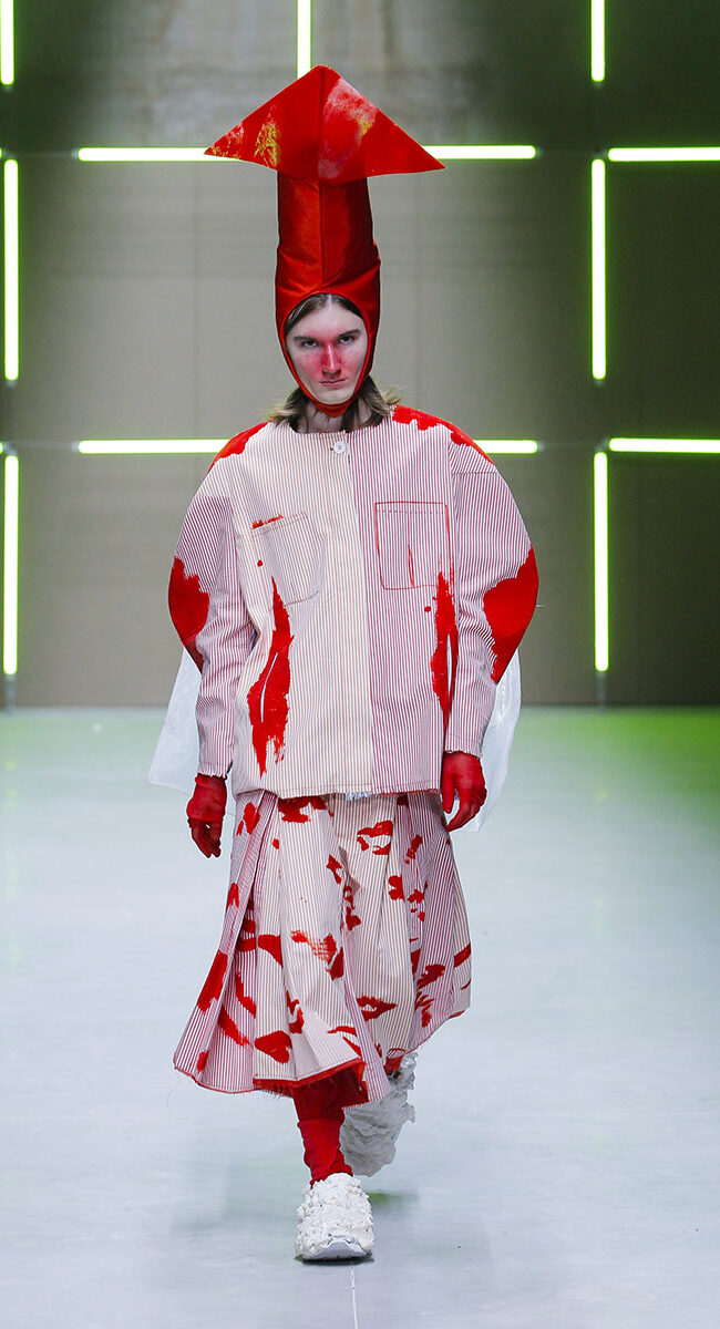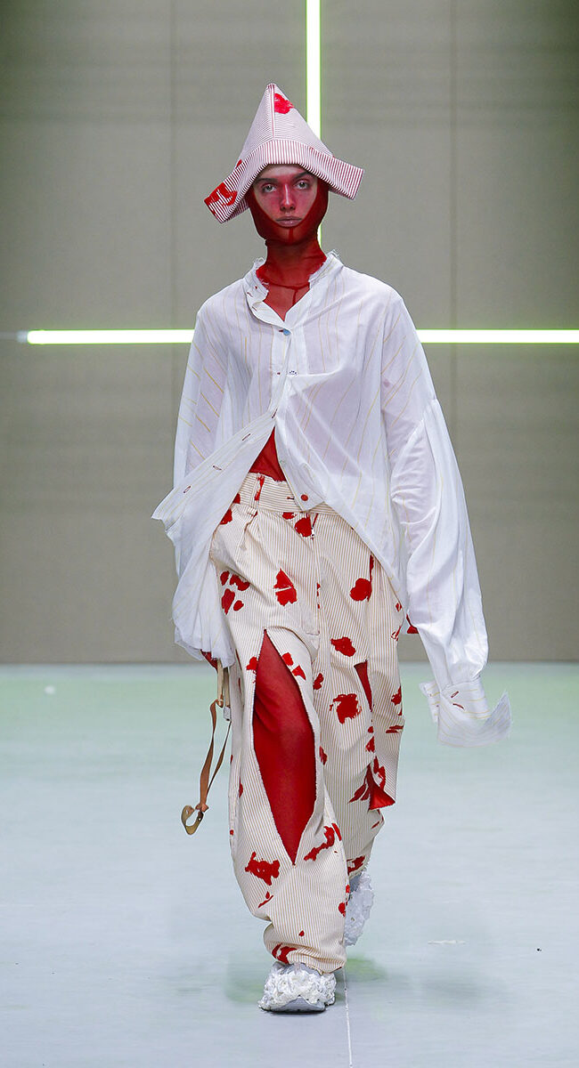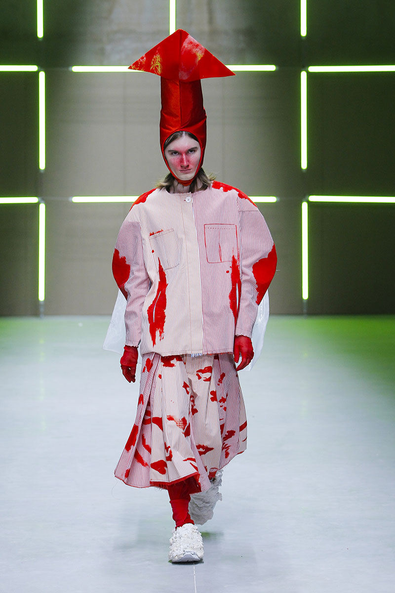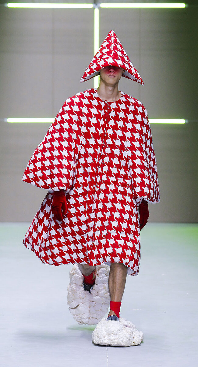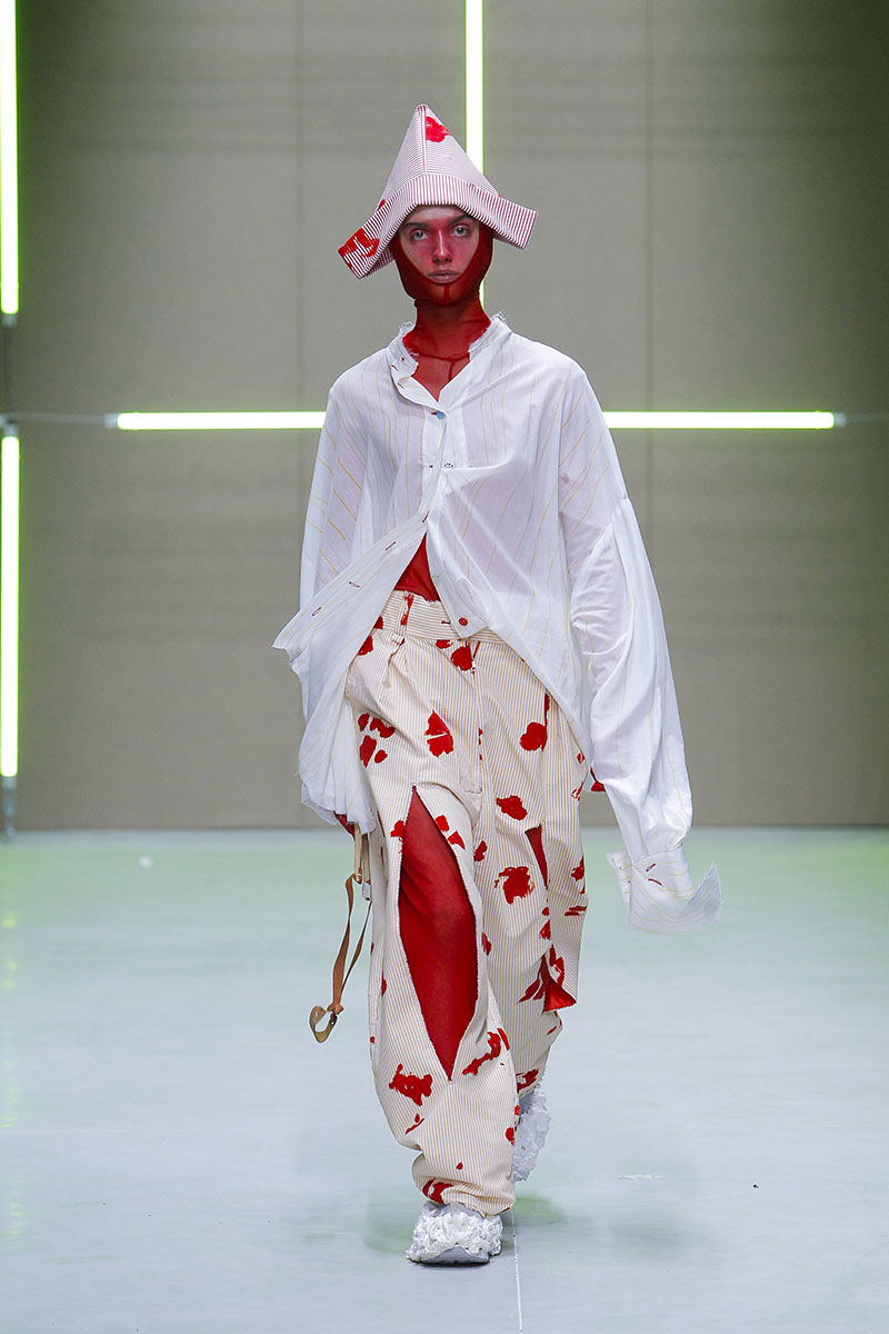 La interesante propuesta para Sangue Novo ModaLisboa SS23 ha sido titulada Digression. Sin duda, ha sido una de las colecciones que más destacó en esta primera jornada de ModaLisboa SS23 ya que nos sumergía en un nuevo universo habitado por lo que parecía un séquito de gnomos de jardín adulterados.
