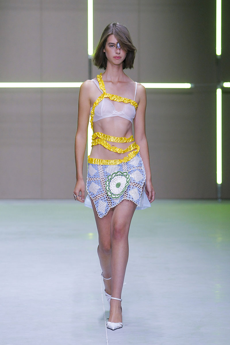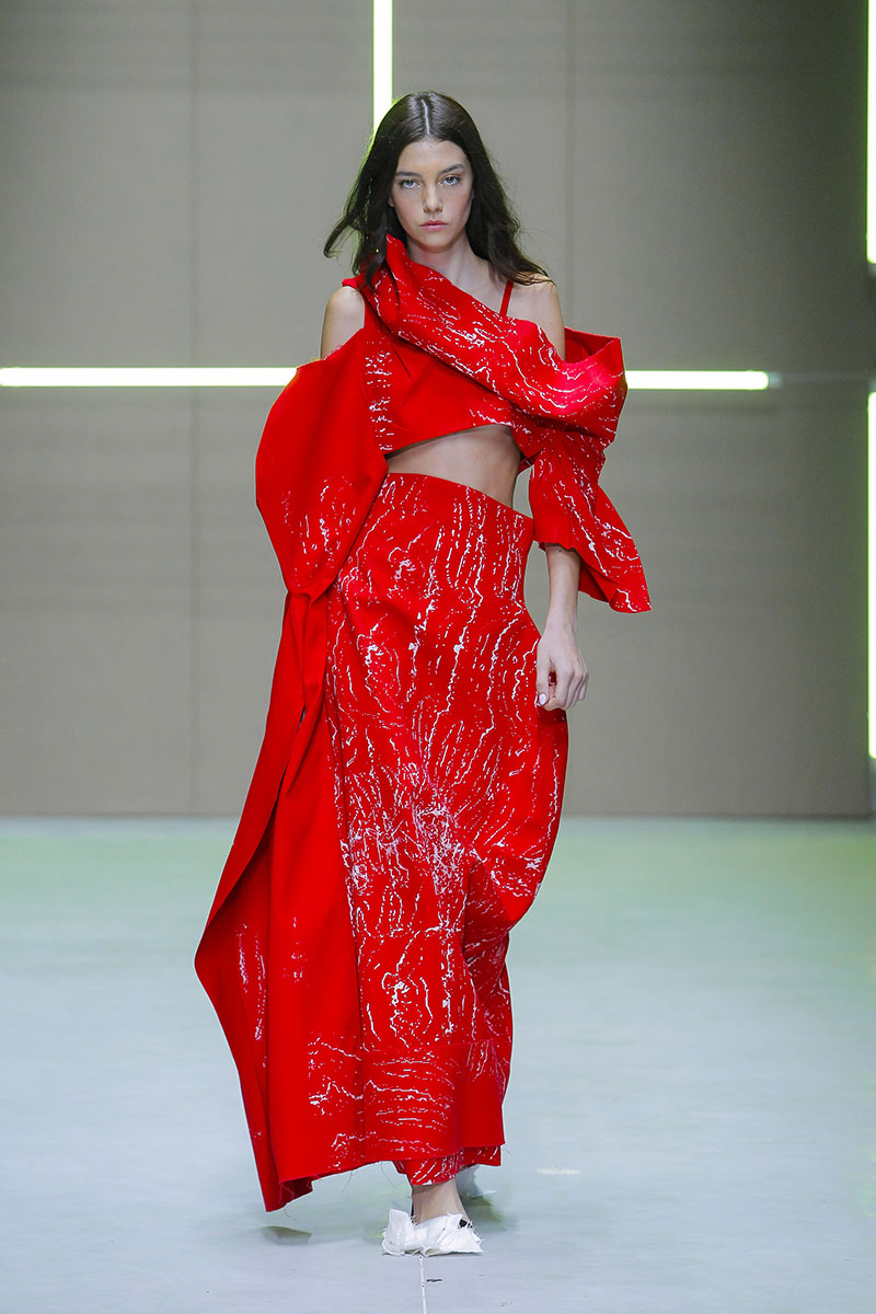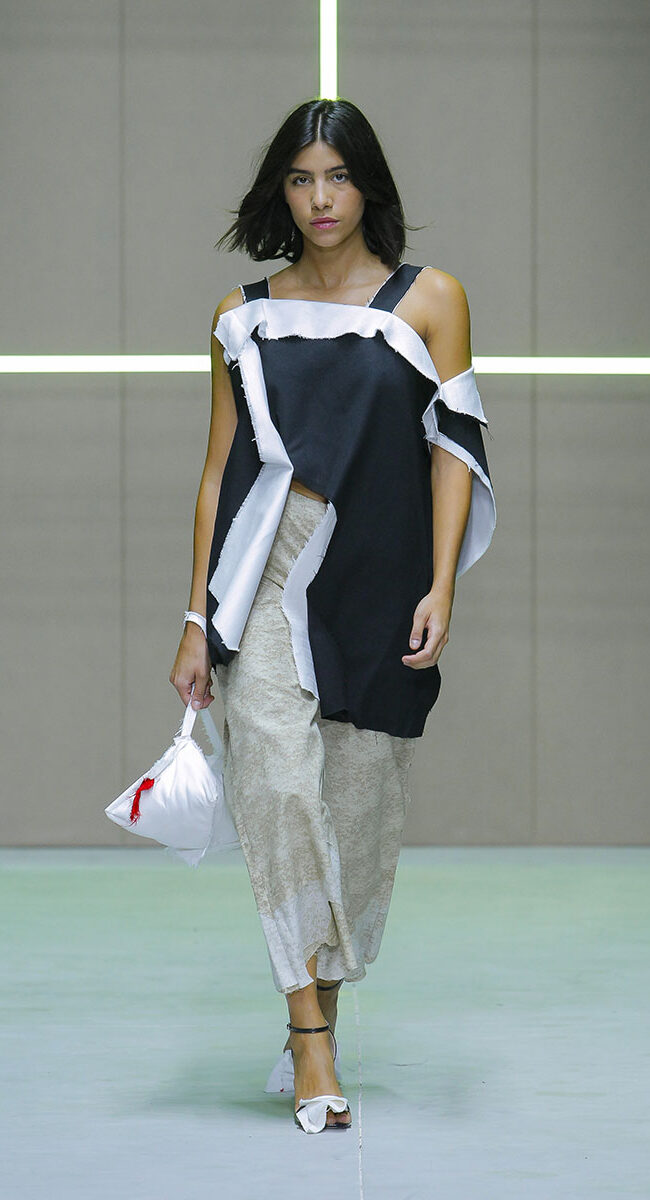 Maria do Carmo (Madeira), se graduó en Diseño de Moda Femenina en Central Saint Martins y trabajó en A.F.Vandevorst y Acne Studios. La pandemia hizo que regresara a su Isla, donde se inspiró para para comenzar su propia marca, Maria Do Carmo Studio. A través de una exhaustiva experimentación con el upcycling, realiza colecciones altamente creativas y sostenibles en las que el material se convierte en el principal protagonista.