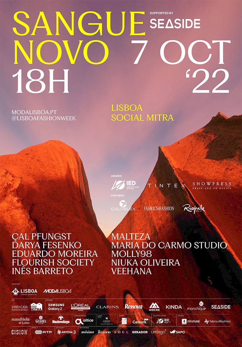 Durante la primera jornada oficial de Lisboa Fashion Week SS23 Oasis, 10 diseñadores emergentes presentaron sus propuestas en Sangue Novo, el concurso que incentiva y potencia la nueva generación de creativos que quieren conseguir despuntar en el mundo de la moda. En esta primera fase participaron Çal Pfungst, Darya Fesenko, Eduardo Moreira, Flourish Society, Inês Barreto, Malteza, Estudio Maria Do Carmo, Molly98, Niuka Oliveira y Veehana.