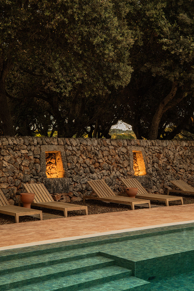 El proyecto de interiorismo, dirigido personalmente por Juana Vilafranca, refleja una sensibilidad naturalista y profundamente respetuosa con el entorno. Para dar forma a los espacios, se rodeó de colaboradores que compartieran esa misma mirada, como el estudio de paisajismo La Rosa Maura, reconocido por su enfoque sutil, sensible y ecológico.