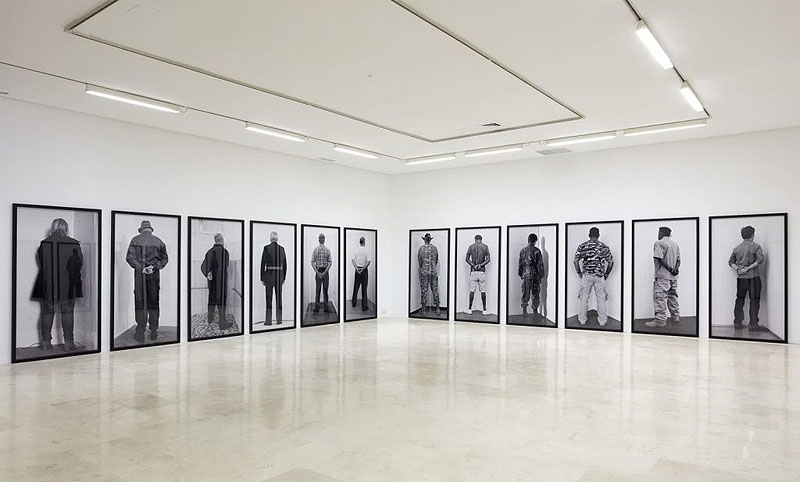 Esta exposición consiste en la compilación y análisis de uno de los recursos más presentes en la práctica de Santiago Sierra a través de toda su carrera artística: la captación de imágenes de personas de cara a la pared.