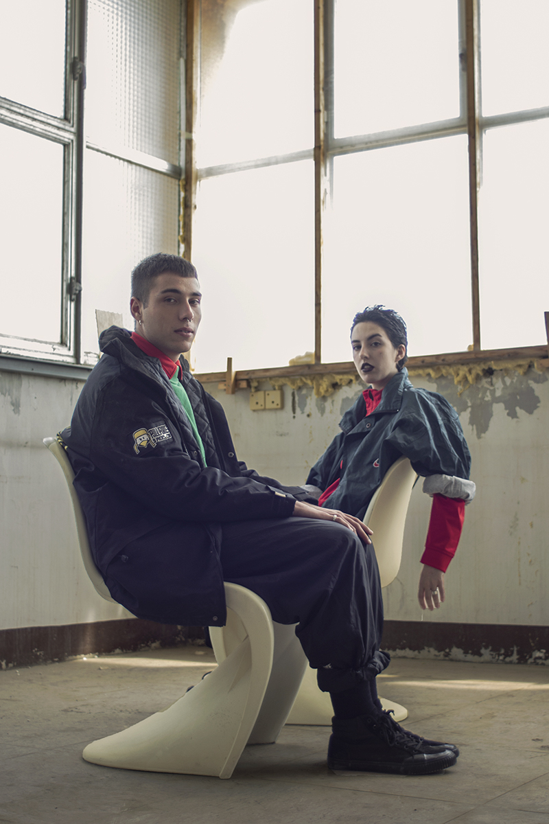 Nico García, amigo y estilista del proyecto, fue quien impulsó el concepto principal, quería dar visibilidad a la moda sostenible, convirtiéndolo en un estilo de vida; surgió porque queríamos mostrar que es posible seguir las tendencias vistiendo con ropa de segunda mano y además, fomentando el comercio local. Es por eso quisimos contactar con Makeo Top para ver si nos podía prestar su ropa y hacer posible la propuesta. Teníamos claro que queríamos transmitir frescura al ver las fotografías, aportar una estética joven y urbana. También tuvimos muy en cuenta el espacio.