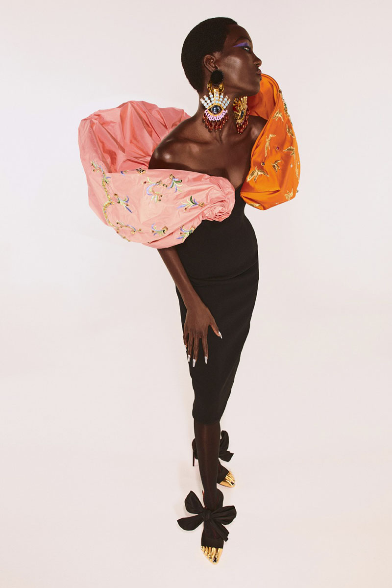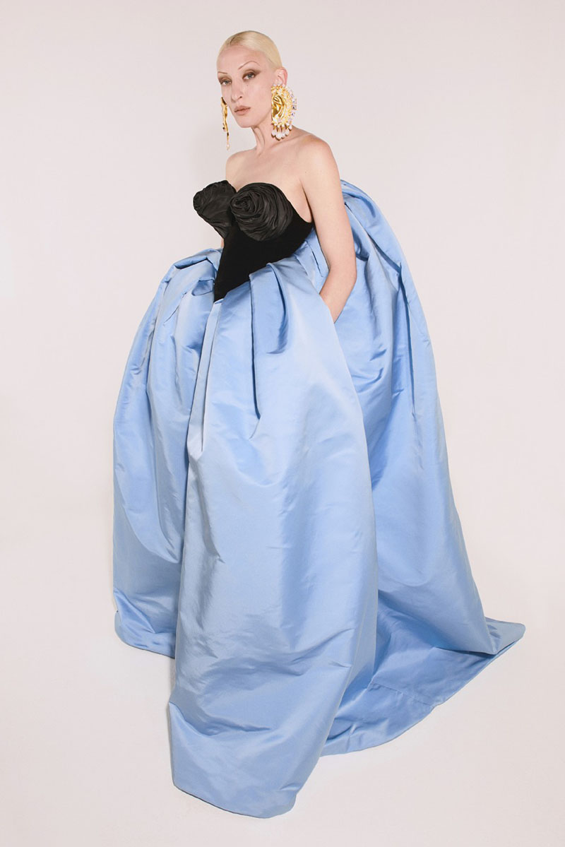 Por último, la tercera parte de Schiaparelli Alta Costura FW21-22 tiene como objetivo festejar el color. La seda, el terciopelo negro e incluso la cerámica se complementan con detalles en azul, naranja y rosa salmón para recrear los trajes de luces. Polémicas aparte, la reminiscencia taurina es común entre los diseñadores que, cautivados por las siluetas abombadas y las prendas recargadas, acuden a ella como fuente de inspiración.