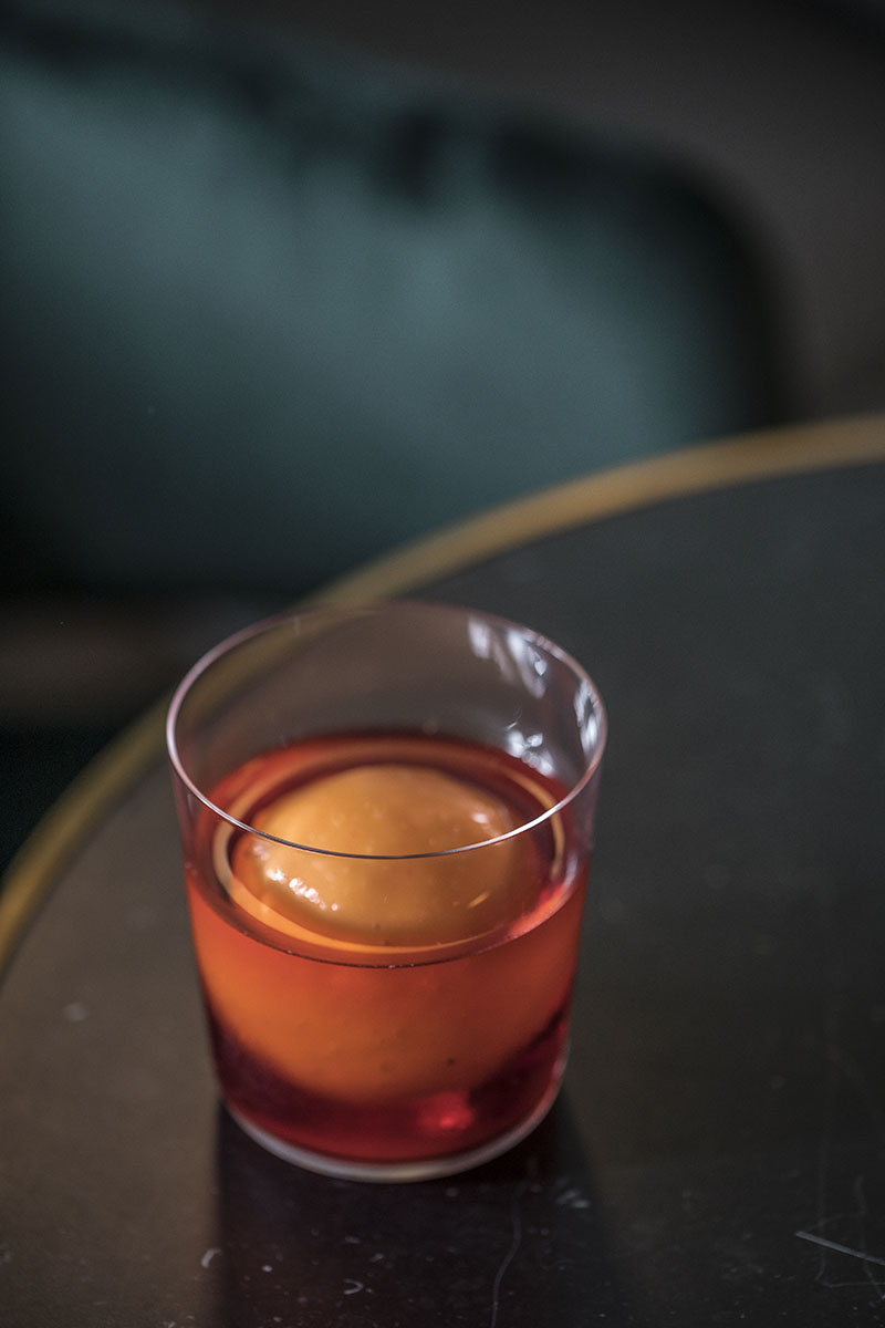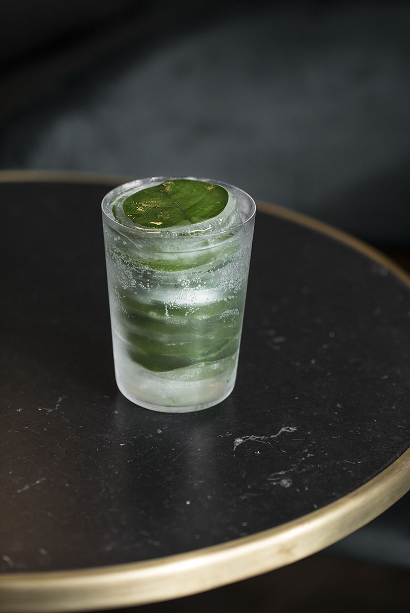 De la mencionada barra-isla salen cócteles (en torno a 15 euros) tan efectistas como Krypta o Primordial, y tan limpios y minimalistas como su negroni de bergamota con hielo que no se derrite o el refrescante Mil Fulls, apenas unas capas de hielo alternadas con hojas de limonero.