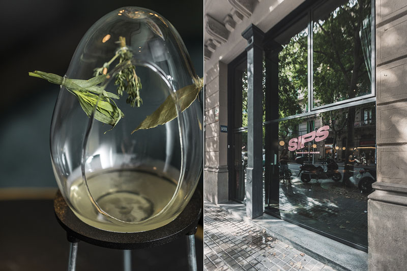 Sips abrió en el Eixample hace poco más de dos años. Bajo el amplio espectro de Drinkery House, un lugar donde se sirven bebidas, Simone y Marc han hecho confluir altas dosis de innovación, técnica y hospitalidad. Se trata de un espacio diseñado por ellos mismos y ejecutado por el arquitecto Pau Llimona. La gran sorpresa fue la presencia de una barra desfragmentada, una barra-isla, en mitad de la sala.