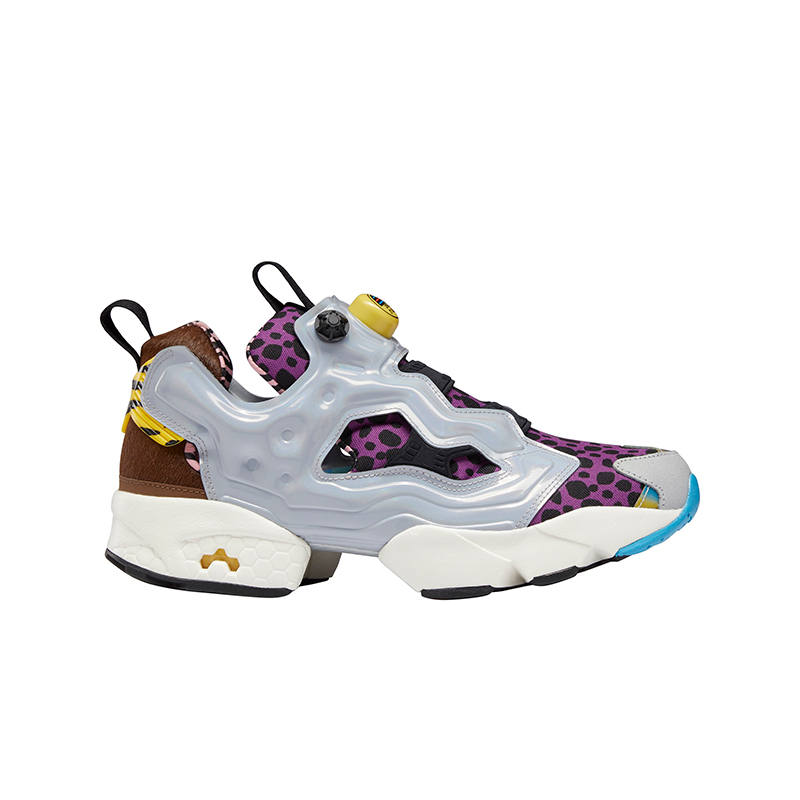 El diseño ultra chunky y asimétrico de la Instapump Fury es la base perfecta para representar la unión de estos dos universos. Esta zapatilla sirve de puente narrativo para unir ambos mundos con una combinación de estampados animales y pelaje con detalles metálicos e iridiscentes. En el interior, el estampado hace un guiño a esa teoría que dice que los universos de ambas familias están unidos.