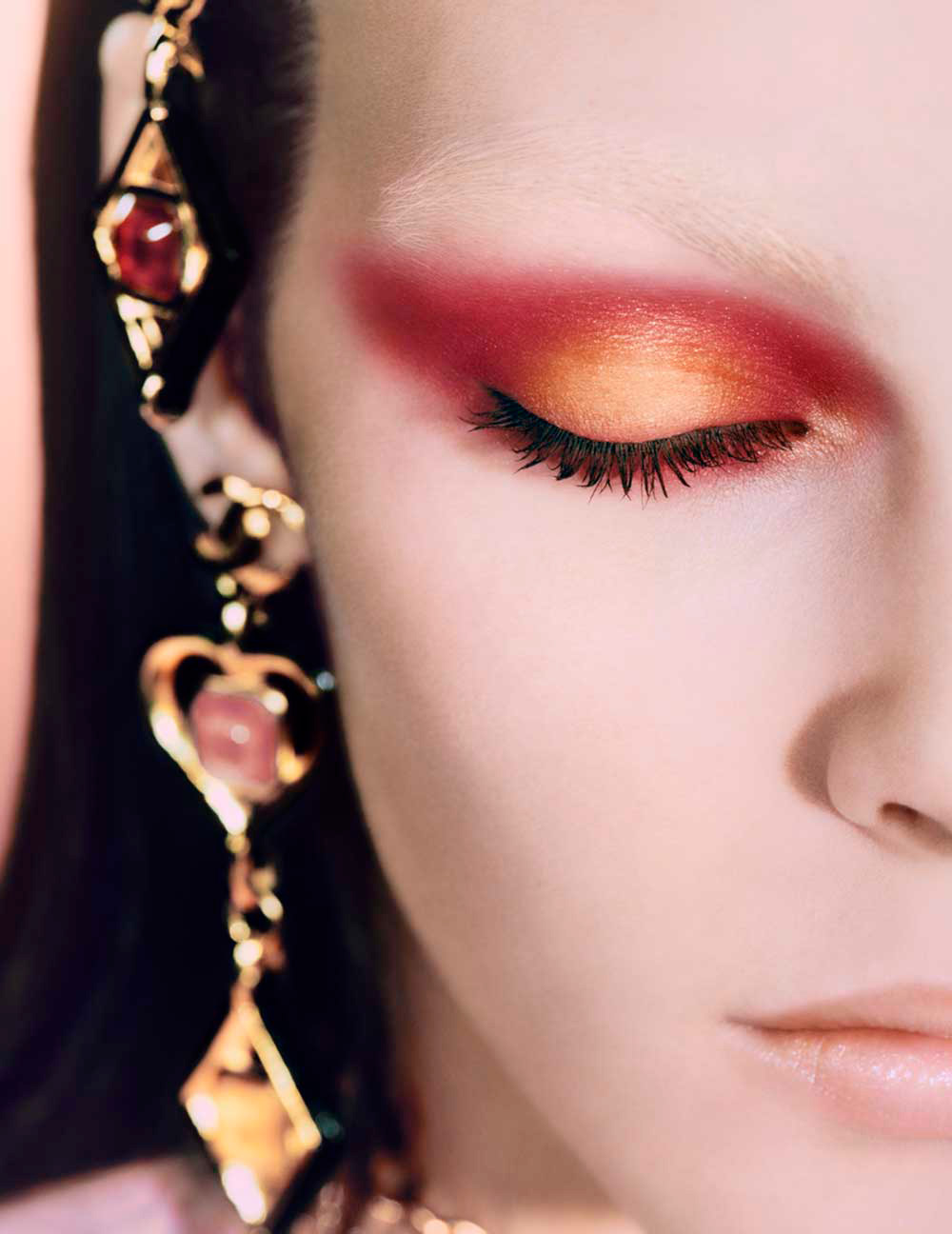 1- Parure Baroque: una paleta de tonos joya donde reinan dos profundos tonos, rojo y verde, Ruby Red y Emerald Green, ambos magnificados por el brillo de un Antique Gold y la iridiscencia de Pearl White para la capa superior.