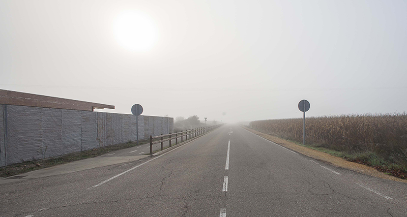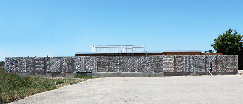 Detrás de este muro se oculta la Casa Fortaleza, una vivienda diseñada con criterios sostenibles y aprovechando la energía geotérmica por el estudio madrileño CSO Arquitectura, un ejemplo de arquitectura sostenible y de cómo aprovechar al máximo los recursos naturales. Los paisajes que la rodean la hacen parecer un escenario de una película de David Lynch.