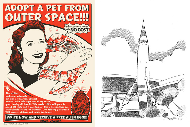 Izda: Alvaro Pff – Free Alien. Dcha: Danny Heller – TWA Rocket