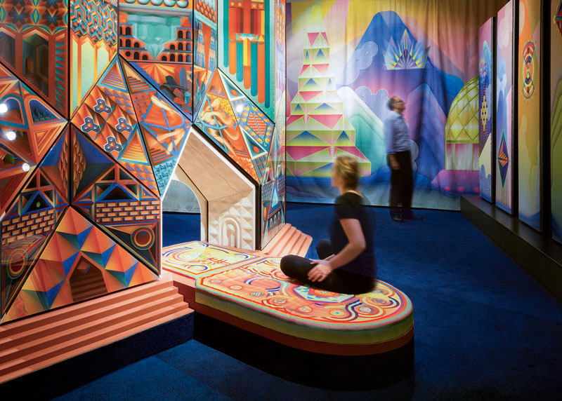 Imágenes superiores. Izquierda: Propuesta para el Museo de Hilma af Klint (2017) en Estocolmo. Derecha: Kimono para James Taylor Foster y su viaje a Burning Man (2017). © Space Popular