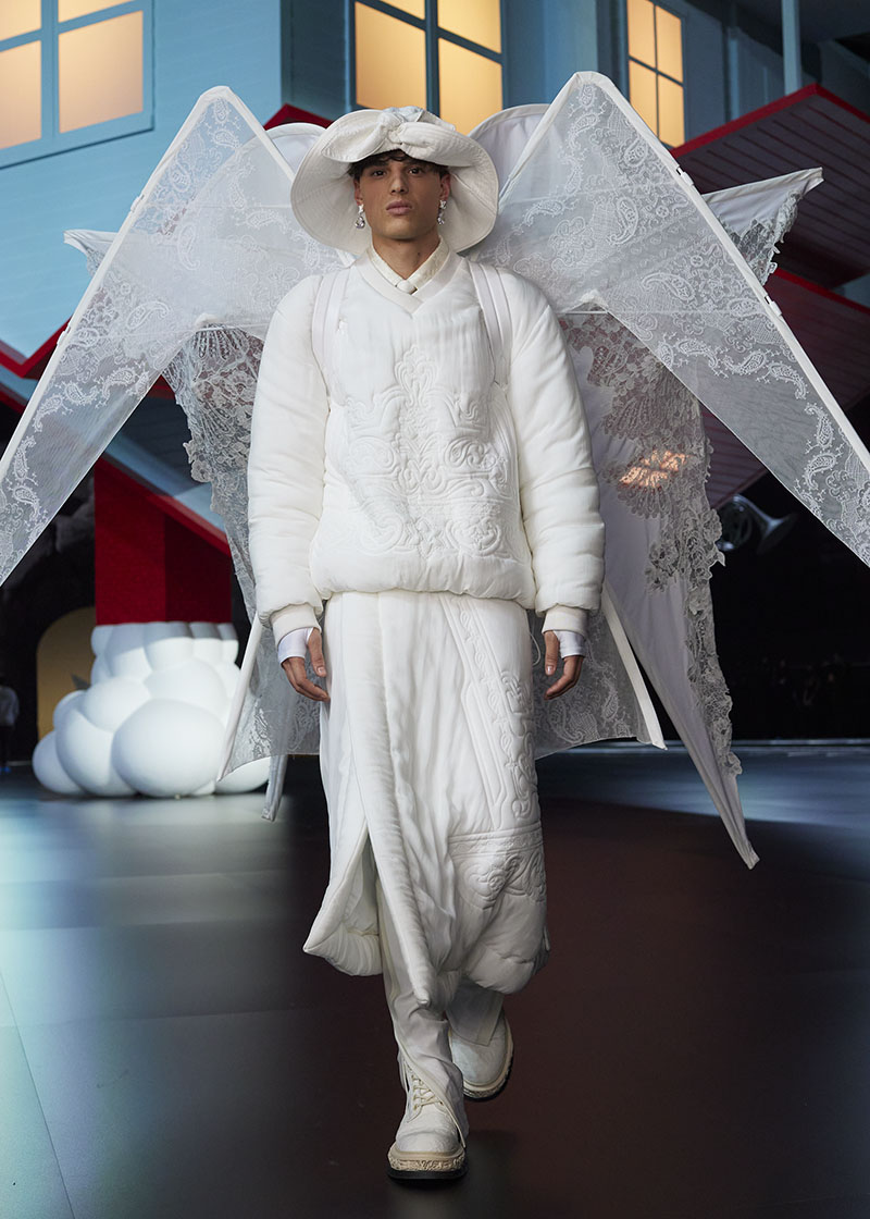 Todo el universo de la colección de Louis Vuitton FW22 men’s presentada en Bangkok ha sido creado a través de lo que podrían ver los ojos de un niño según Virgil Abloh. El resultado de esta práctica ha sido denominado Boyhood Ideology, y gracias a él consiguen transmutar los códigos de vestimenta vinculados a los arquetipos sociales impuestos para descubrir nuevas combinaciones y perspectivas. A través de los materiales y técnicas utilizados para construir esta colección, el surrealismo toma forma abstrayendo lo familiar y expandiendo nuestra mente hacia nuevos horizontes.