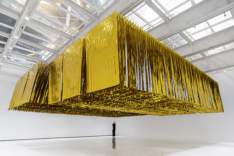 Esta monumental escultura está instalada en el hall principal del Times Art Museum en Chengdu, China, como parte de la exposición “A Momentary Spring.”