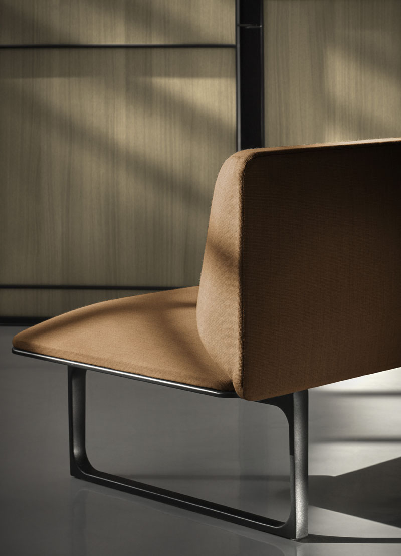Permite crear ambientes más confortables sin necesidad de cerrar los espacios. Son separadores de ambientes que pueden ser en melamina de roble, tapizados o tapizados fonoabsorbentes y, gracias a sus ejes de giro, permiten composiciones rectas o en ángulos. Así mismo, aunque todas las mamparas mantienen la misma altura (126 cm), se diferencian varias anchuras (50, 70, 100 y 140 cm) que se adaptan a las medidas de cada espacio, permitiendo al interiorista crear dibujos con los distintos módulos.