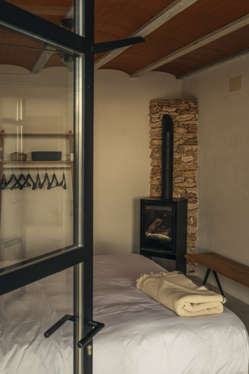 El toque de color se introduce en rincones de la cocina, el recibidor y el baño, adornados con azulejos de cerámica verde que han sido fabricados de manera artesanal en La Bisbal. Las habitaciones resultan especialmente acogedoras por sus muebles de tonos amaderados, sus suelos con alfombras y las estufas de leña que calientan el hogar durante los meses de invierno.