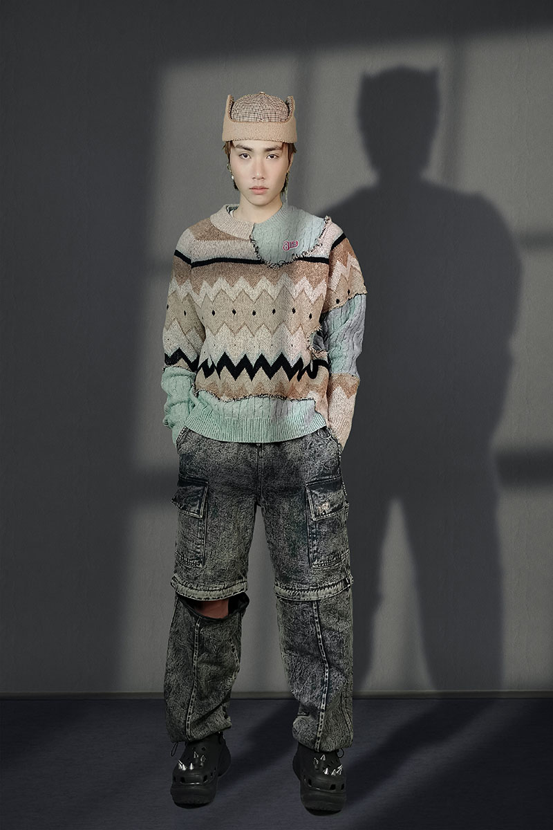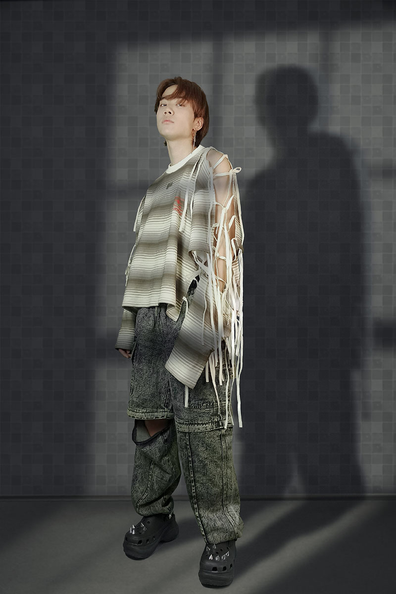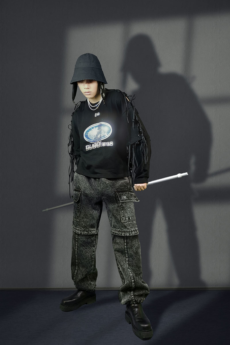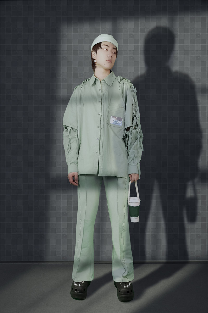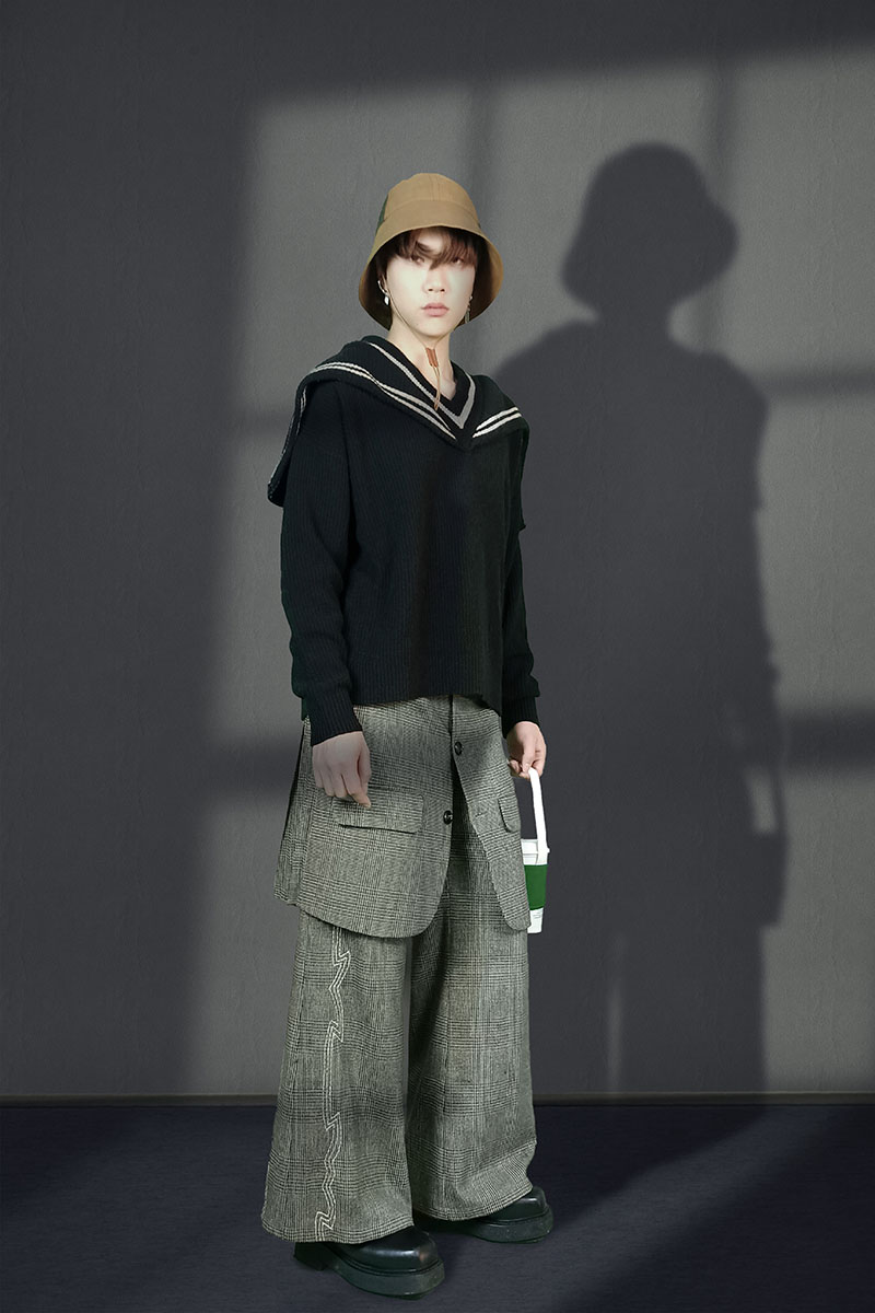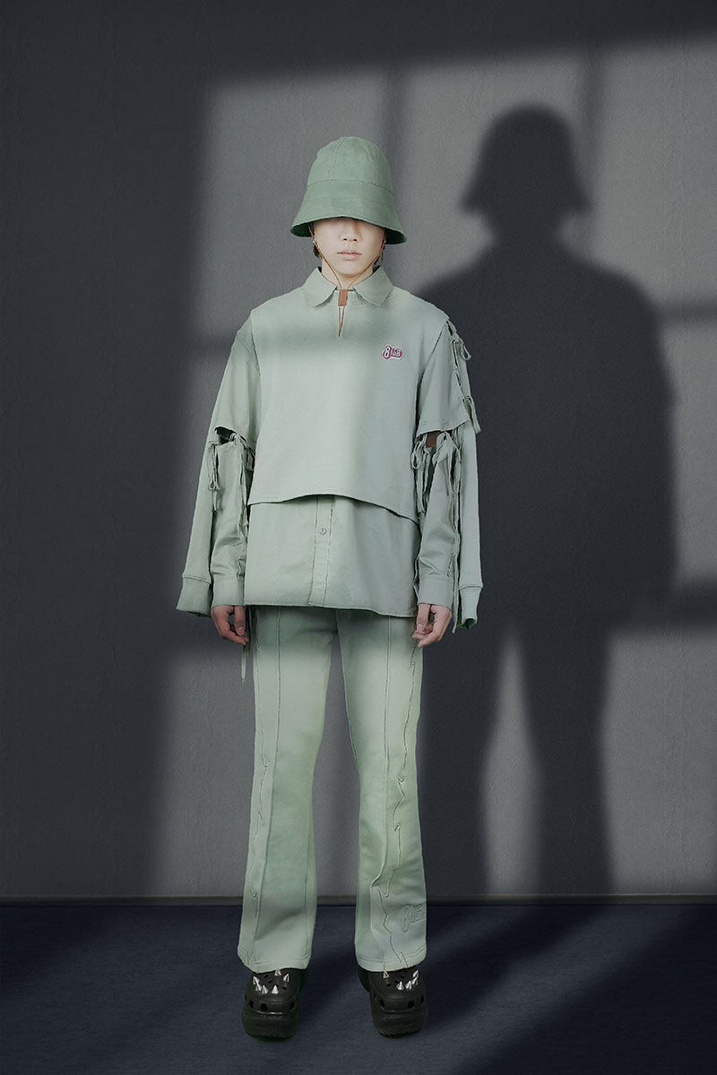 Dentro de esta colección nos encontramos diferentes variantes de lo que se podría considerar un “uniforme” para las calles ligeramente inspirado en algunas de las prendas japonesas más vistas entre sus viandantes: Como los uniformes de las colegialas japonesas o los pantalones estilo nikka pokka. Incluso algunos de los detalles que encontramos en la colección SugoiGB FW21 de 8IBG como los cordones de las camisas están inspirados en el atuendo del personaje Jimbei del famoso anime One Piece.