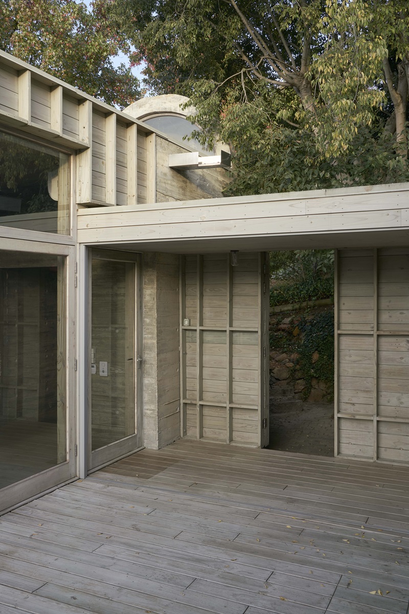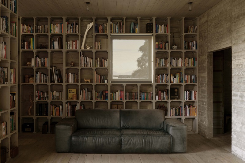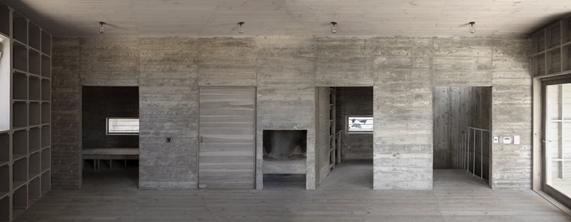 Uno de los aspectos más interesantes de este proyecto es la ambigüedad presente en su juego de materiales. Y es que el misterio es el sello de identidad de esta casa proyectada con el arte del trampantojo. Por un lado, la madera usada en el encofrado deja la huella de su textura en el hormigón visto. Y, por otro lado, el hormigón visto le da una pátina a la madera para conseguir un efecto envejecido, lo que hace difícil distinguir un material del otro.