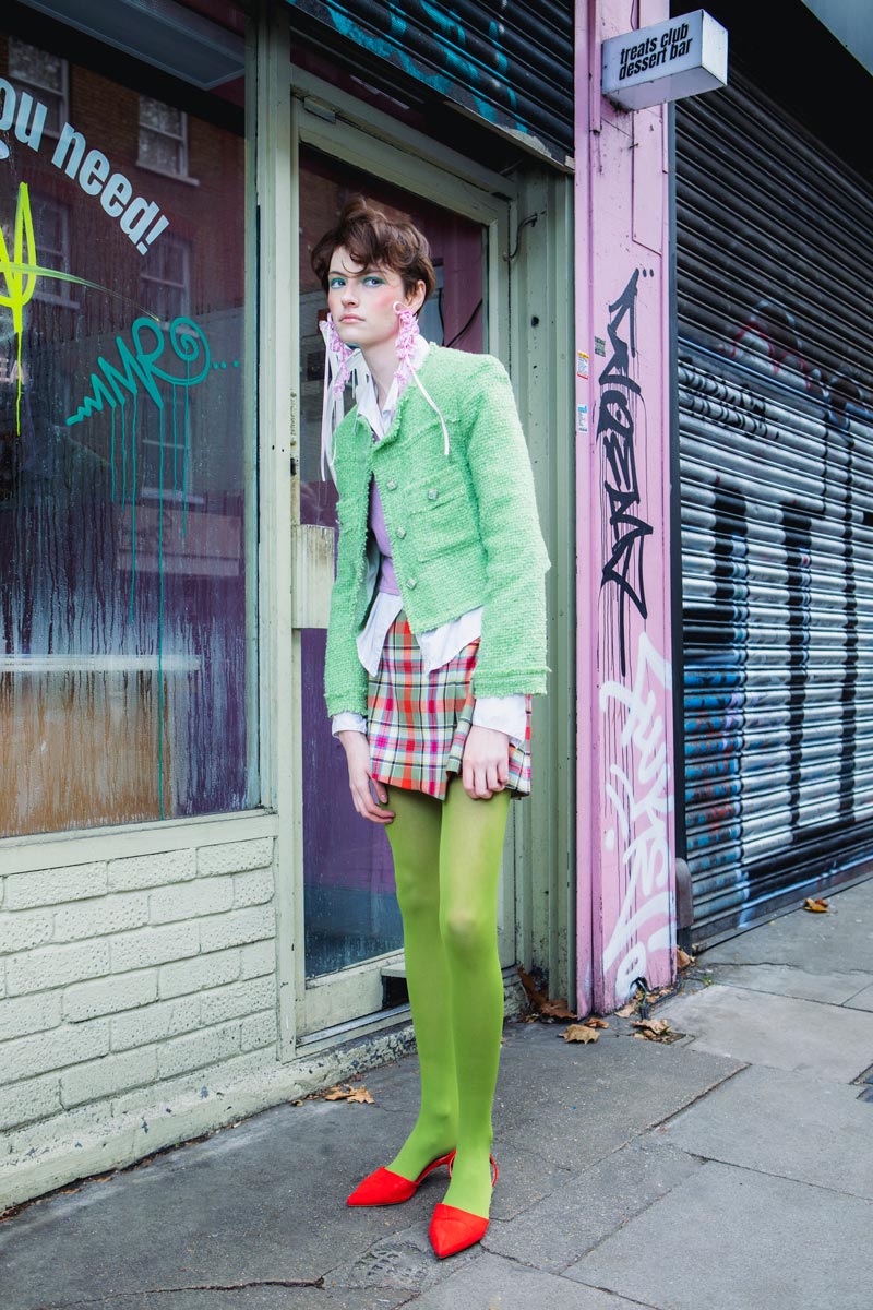 Camisa VICTORIA BECKHAM + Chaqueta FREE PEOPLE + Pendientes R.L.E. House + Medias WOLFORD + Falda VIVIENNE WESTWOOD + Zapatos AGE OF INNOCENCE