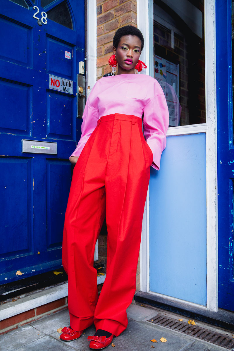 Pendientes R.L.E House + Top y pantalón JACQUEMUS + Bolso PATRICIA FIELD + Zapatos VIVIENNE WESTWOOD