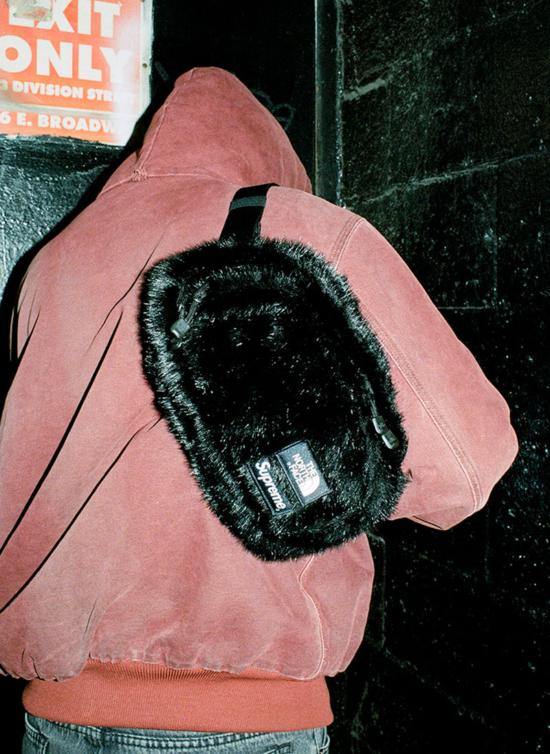 La colección de Supreme x The North Face invierno 2020 se compone de 3 piezas: Chaqueta Nuptse con relleno de piel falsa, Mochila de nylon forrada de piel falsa y Riñonera decorada con piel falsa. 3 piezas confeccionadas en exclusiva para Supreme, donde lo falso por primera vez mola más que lo auténtico.