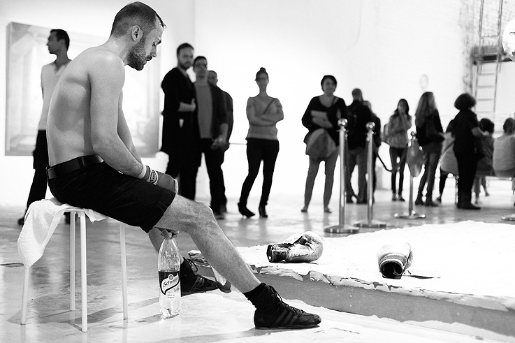 Szilard Gaspar es un joven escultor e performer rumano / húngaro. La conexión del cuerpo y la mente caracteriza la visión del artista. Desarrolla en su práctica una reflexión basada en imágenes, formas y actitudes del mundo del boxeo.
