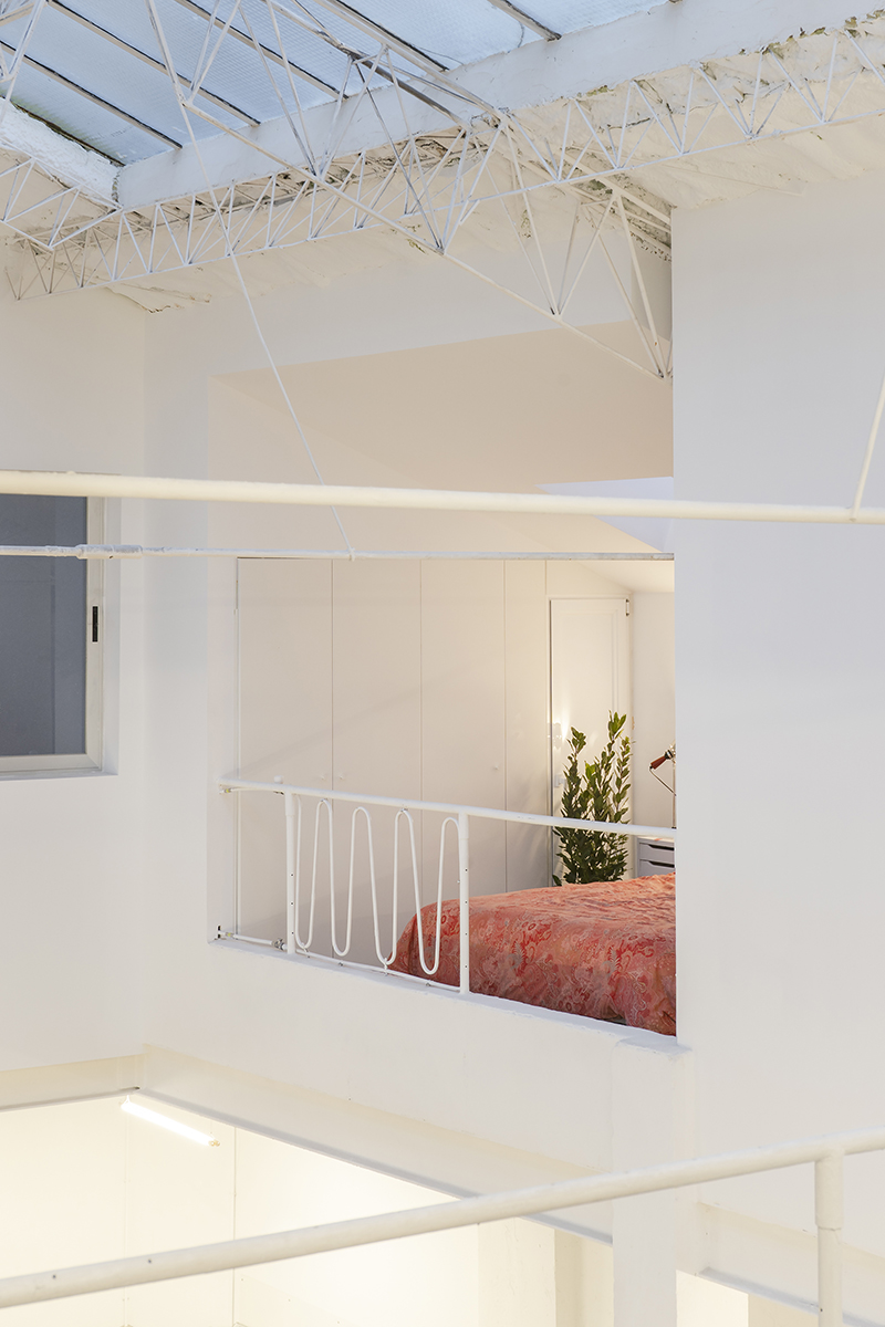 La intervención espacial llevada a cabo por Taller de Casquería, y construida por Fast&Furious Office, divide el programa en dos plantas: público en la planta principal, a pie de calle, y las zonas más privadas de dormitorio y cocina en la planta de arriba. Tras un proceso de derribo de aquellos añadidos existentes en la nave se pone en valor un espacio central que se abre hacia el techo en busca de amplitud y luz. Una intervención inteligente que subraya las virtudes propias del espacio y que se cualifica a través de estas construcciones puntuales.