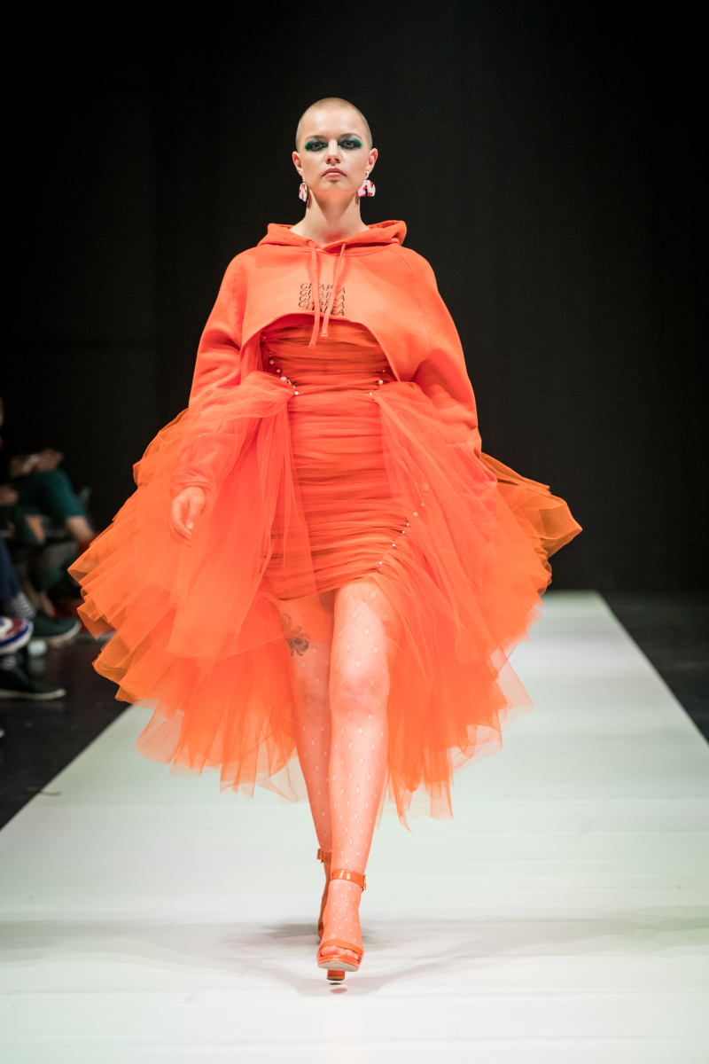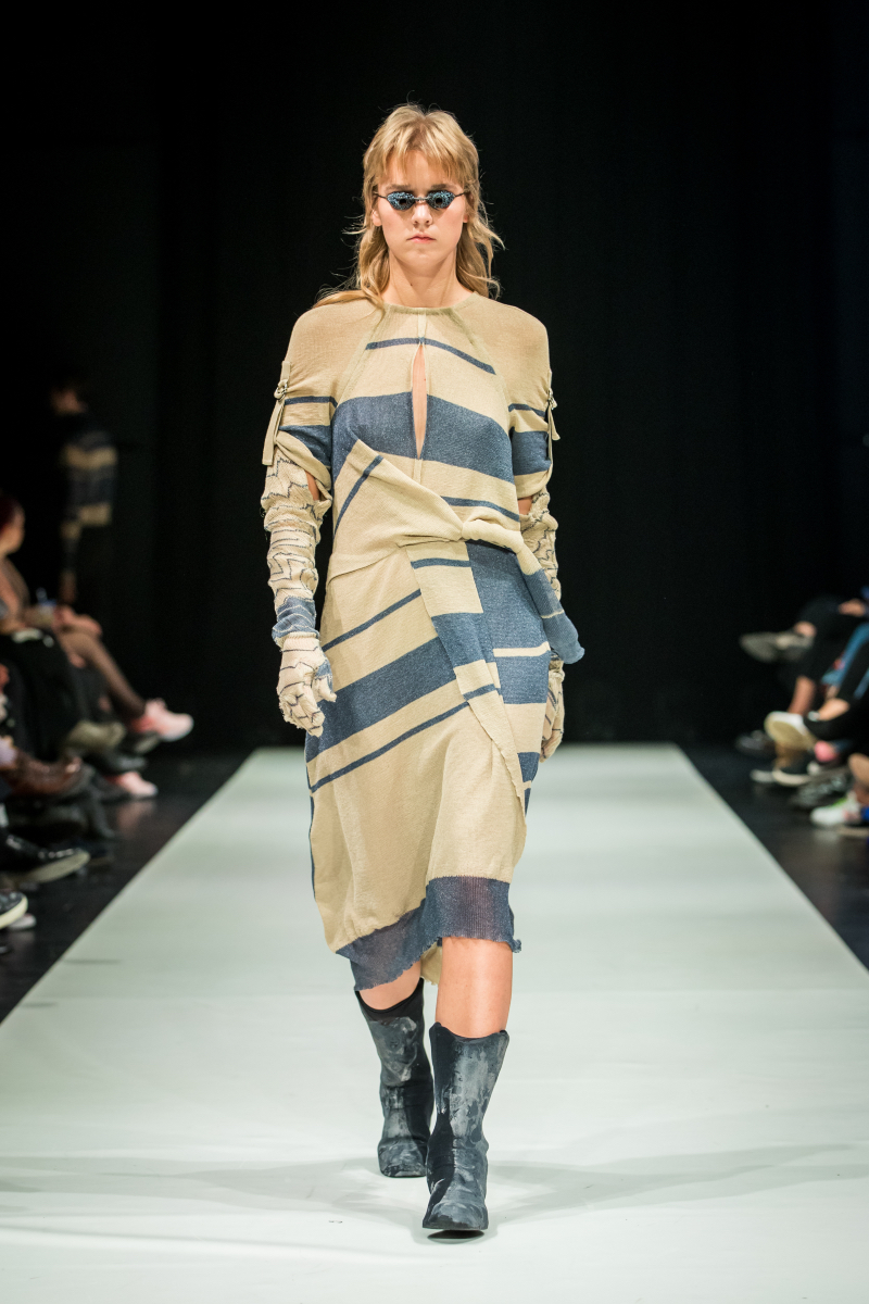 La diseñadora Eve Hanson decidió sorprender al público de Tallin Fashion Week y lo logró. A través de un ritmo rápido y vanguardista, presentó sus nuevos diseños. Abrigos largos, riñoneras bicolor y estampados basados en la naturaleza, son los pilares en los que se basó la firma. Con esta colección ganó el premio Silver Needle (aguja plateada).