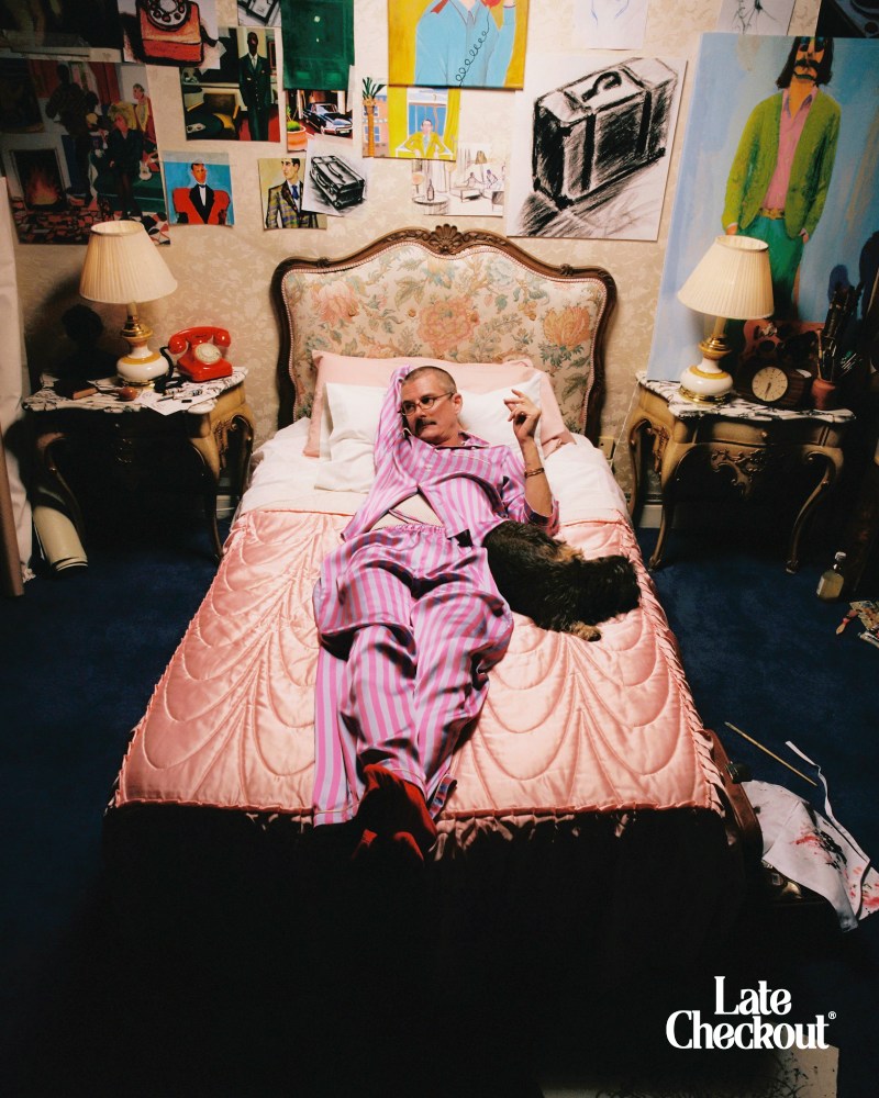 El universo decadente del hotel que la marca de C.Tangana ha creado se expande. La nueva colección de Late Checkout The Painter explora el arquetipo de un pintor que solo planeaba quedarse hospedado un par de días, pero que se ha instalado permanentemente. En cuanto a ropa, la colección introduce prendas de menswear clásico decoradas con grafismos pintados a mano con una estética -muy- particular.