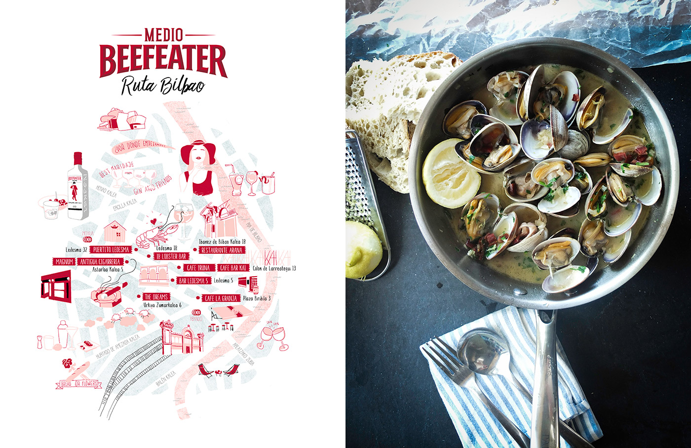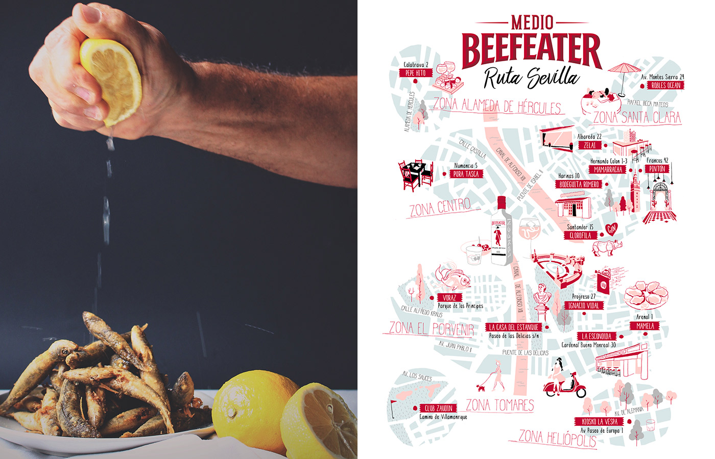 Londres con los años, en el siglo XVII, se convertiría también en la capital de la ginebra, primero, y después del gin tonic desde finales del siglo XIX. Ambas culturas, la española y la británica, vuelven a fusionarse a la hora del aperitivo con “Medio Beefeater”: un vaso corto, 2 hielos, medio de tónica y medio de gin.