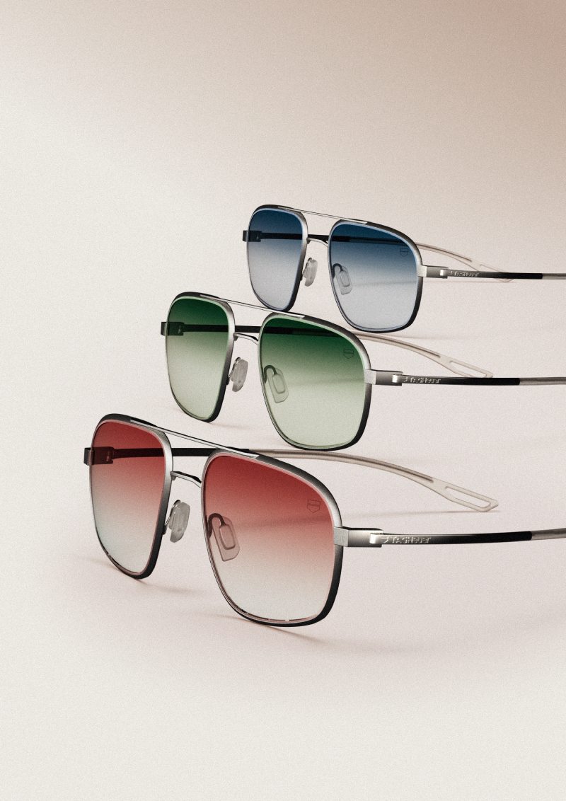 Otro de los modelos de gafas de sol de Patrick Dempsey, el más pequeño y estilizado, viene en la línea Mini Vingt-Sept. Estas son las más funcionales y avant-garde gracias a su marco de acero y bionylon. Y, por cierto, tienen una bisagra statement angulada a exactamente 27 grados, como guiño a otro modelo mítico de la firma.