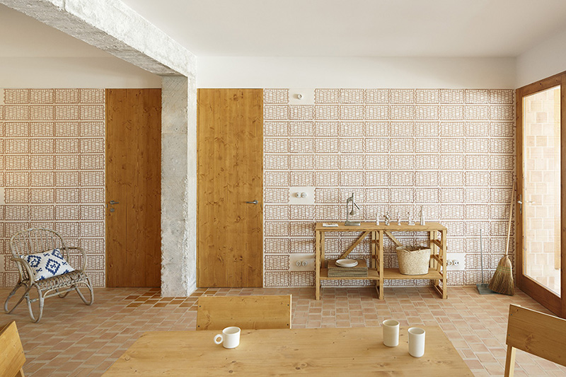 Un hecho distintivo en sus obras es su fuerte interés en la materialidad, y en su honestidad a la hora de mostrarla. Jaume asegura que “al buscar esta coherencia, acabarás cayendo en alguna contradicción. Incluso hasta introduzcas alguna incoherencia forzada para mostrar que hay una regla. ¡Aquí está el divertimento!”. Hoy en día existe la tendencia de mostrar las entrañas de una obra, pero ellos reclaman el papel del revestimiento. “Que de la misma manera que se enseña un hueso o un músculo, podamos también ir bien vestidos.” Can Picafort es un revestimiento, según nos explican. La reforma está hecha a base de bloques de termoargila, que pueden ser muro estructural, aislante térmico o acústico, pero que en este caso son un acabado, un tejido.
