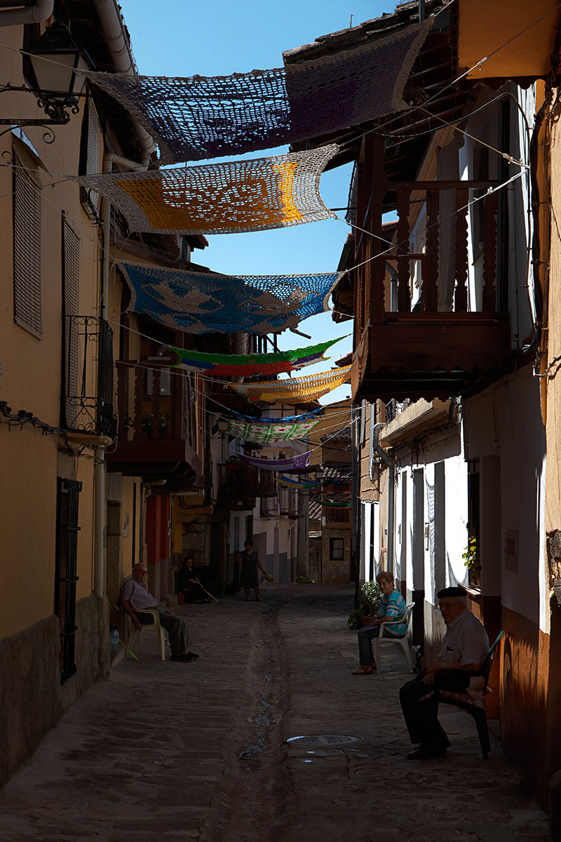 Cada verano desde 2013, se celebra en Valverde de la Vera una iniciativa de cooperación ciudadana. Una comunidad de personas transforma el aspecto del pueblo mediante la confección de parasoles con plástico reciclado.