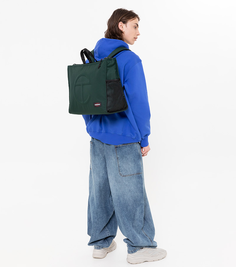 La nueva colección verde y rojo de Eastpak X Telfar estará disponible en la web de Eastpak el 13 de abril y en tiendas seleccionadas a partir del 18.