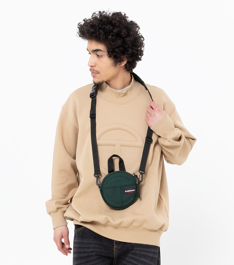 Y si un bolso cuadrado no es vuestro rollo, hay un modelo dentro de la colección de Eastpak X Telfar que puede ser de vuestro agrado. Se llama Circle y es un diseño exclusivo a la colaboración. Por dentro podemos encontrar varios bolsillos con cremallera y una correa desmontable con hombrera.