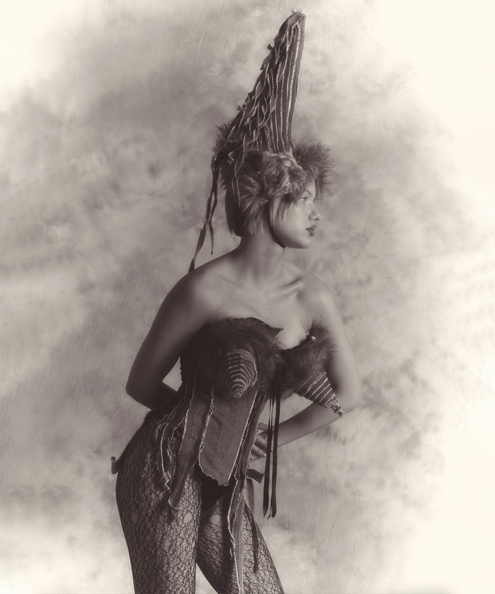 Foto superior e inferior: Corset y sombrero ANTONINA UGLOVA + Zapatos Vintage + Medias CALZEDONIA