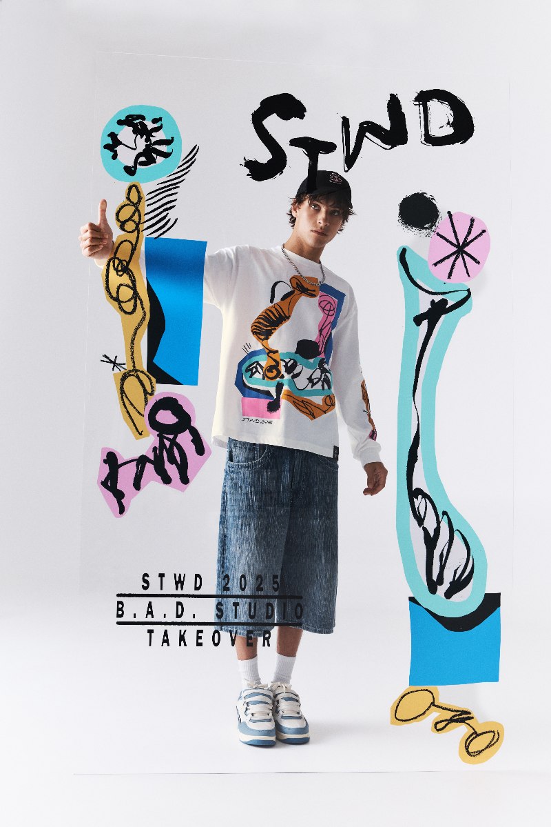 Stwd, la línea joven y urbana de Pull&Bear, se une al artista portugués Braulio Amado para su nueva colección de verano, con mucho denim y algunos chándales.