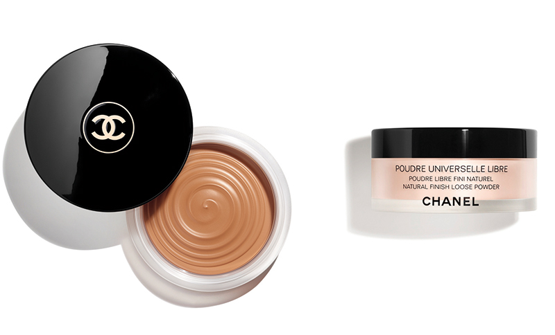 Crema bronceadora y polvos sueltos para terminar el look de cara limpia.