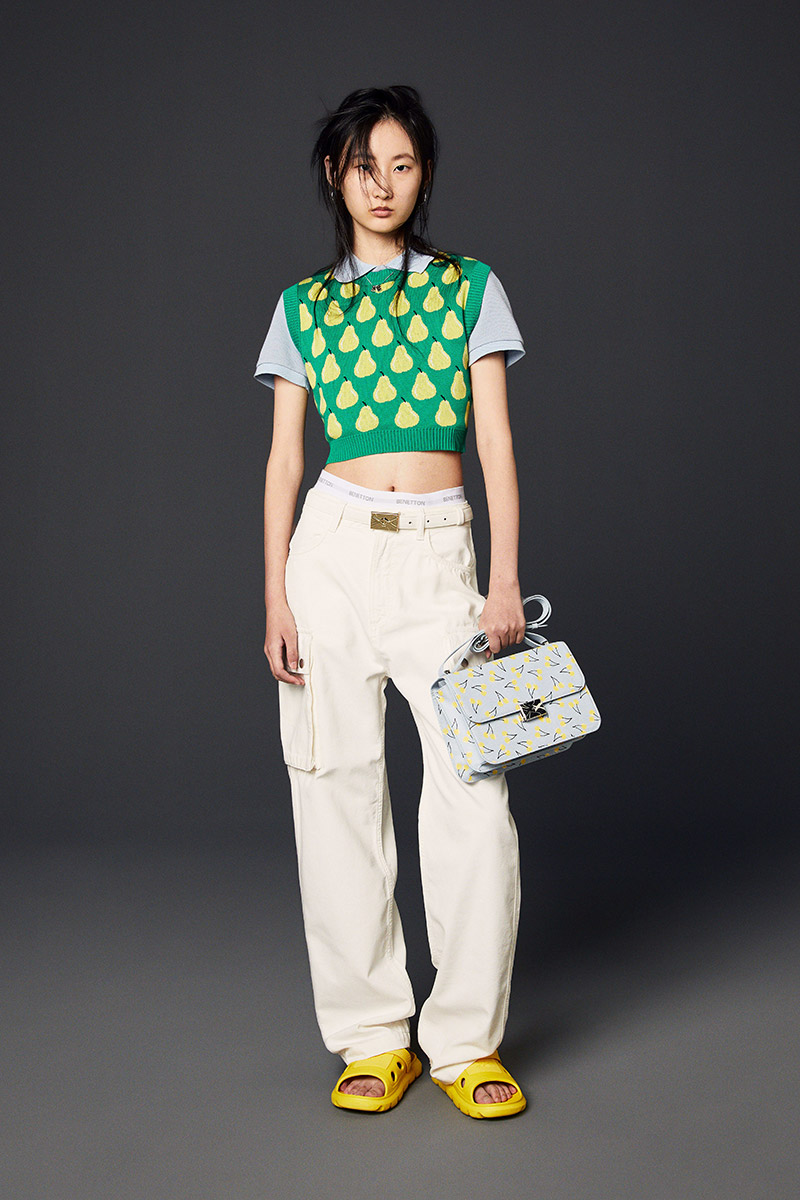 Para la colección Spring 23 de United Colors of Benetton su director creativo, Andrea Icontri, se ha enfocado en el motif de las frutas. Estos estampados, que usa como argumento para cuestionar la calidad de aquello que nos nutre, pueden verse reflejados a lo largo de toda la colección llena de tendencias de mujer para primavera 2023 no solo en prendas, sino en accesorios también.