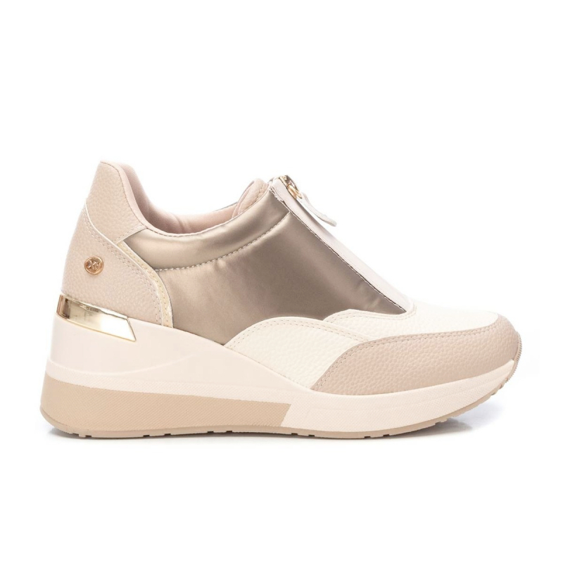 La locura por todo lo ochentero todavía no ha terminado. Una de las tendencias más fuertes para el otoño va a ser la de los acabados metálicos en todas nuestras zapatillas. Para subirnos a este carro, Xti propone su modelo 141874. Se trata de un modelo de estilo y aire casual que incorpora un cierre de cremallera y una cuña de 6 centímetros, para darnos un poco más de altura. El cuerpo superior de esta zapatilla presenta una combinación lisa de materiales metalizados con paneles de cuero granulado de una textura increíble.
