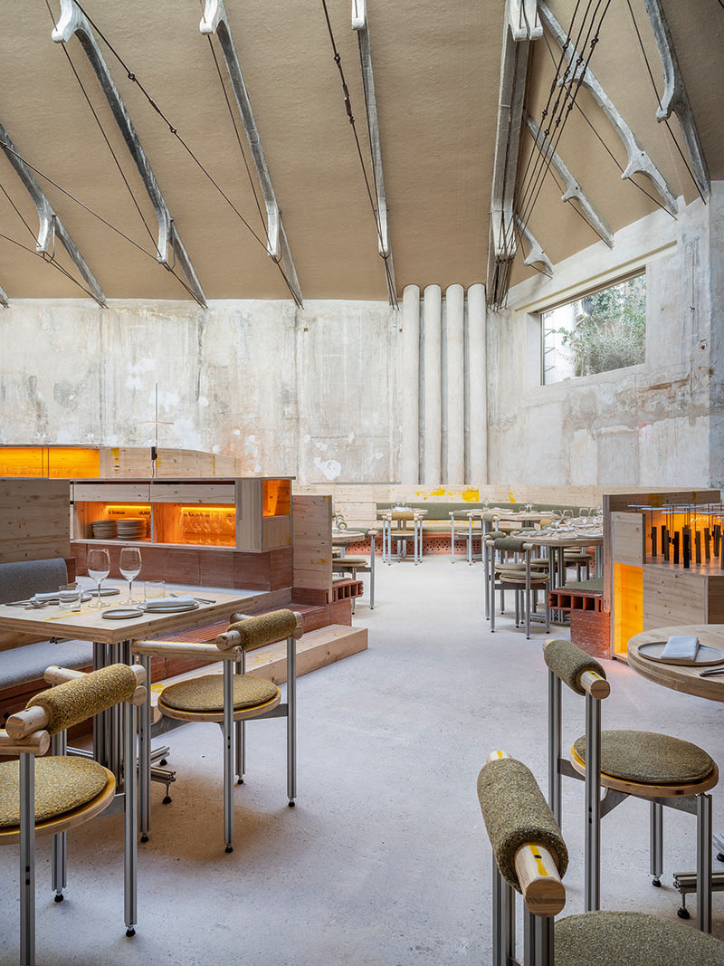 J.A.: Lo más estimulante del momento actual es que ya no hacen falta presupuestos desorbitados para lograr un interiorismo con identidad. La clave está en encargarlo a alguien que entienda tu límite de gasto y, sobre todo, que domine el lenguaje estético que quieres transmitir. Cada vez veo más restaurantes con un diseño impecable pero una propuesta culinaria floja, y, con mayor frecuencia aún, lo contrario: cocinas excelentes que no encuentran el respaldo espacial que merecen. Un caso que me apena especialmente es el de Playing Solo, en Madrid. Luis Caballero, elabora una cocina de altísimo nivel, pero el espacio no acompaña. Un concepto tan sugerente como una barra para pocos comensales sería un caramelo para cualquier interiorista. Por el contrario, en Mo de Movimiento sucede justo al revés: un espacio poderoso que no encuentra su reflejo en la carta. Sin embargo, su nuevo proyecto, Tramo, logra ese equilibrio ideal entre cocina y diseño que, para mí, debería ser siempre el objetivo. Cuando ambas dimensiones se retroalimentan, la experiencia es sublime. Creo que lo que viene con fuerza es una austeridad refinada, muy cuidada. Materiales naturales, menos mobiliario, aunque bien elegido, una atención especial a la acústica y a la iluminación… Todo esto se puede lograr sin grandes inversiones. Elementos como la piedra natural, el pavés o el uso de velas reales me parecen recursos con mucha proyección. En cambio, hay cosas con las que ya no puedo: las plantas de plástico, el ladrillo visto, las sillas desparejadas sin discurso o los paneles de palillería.