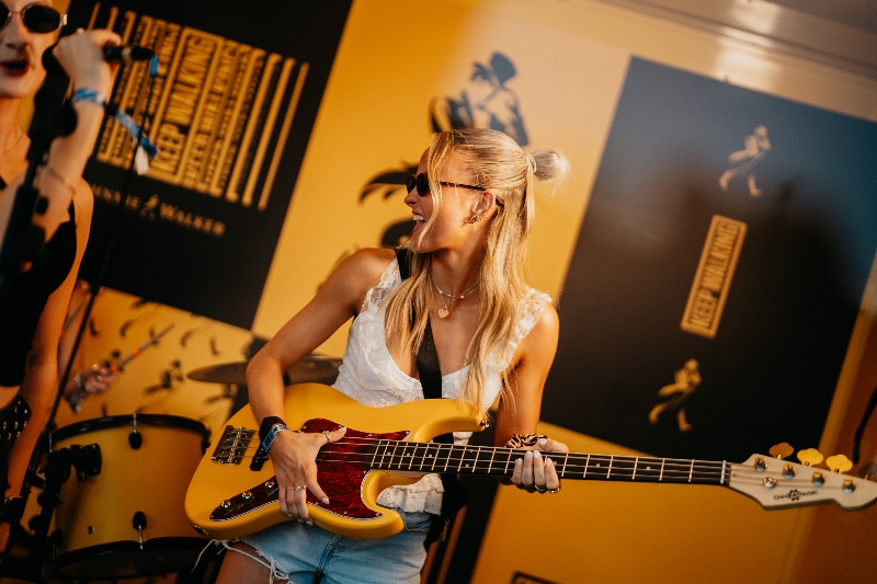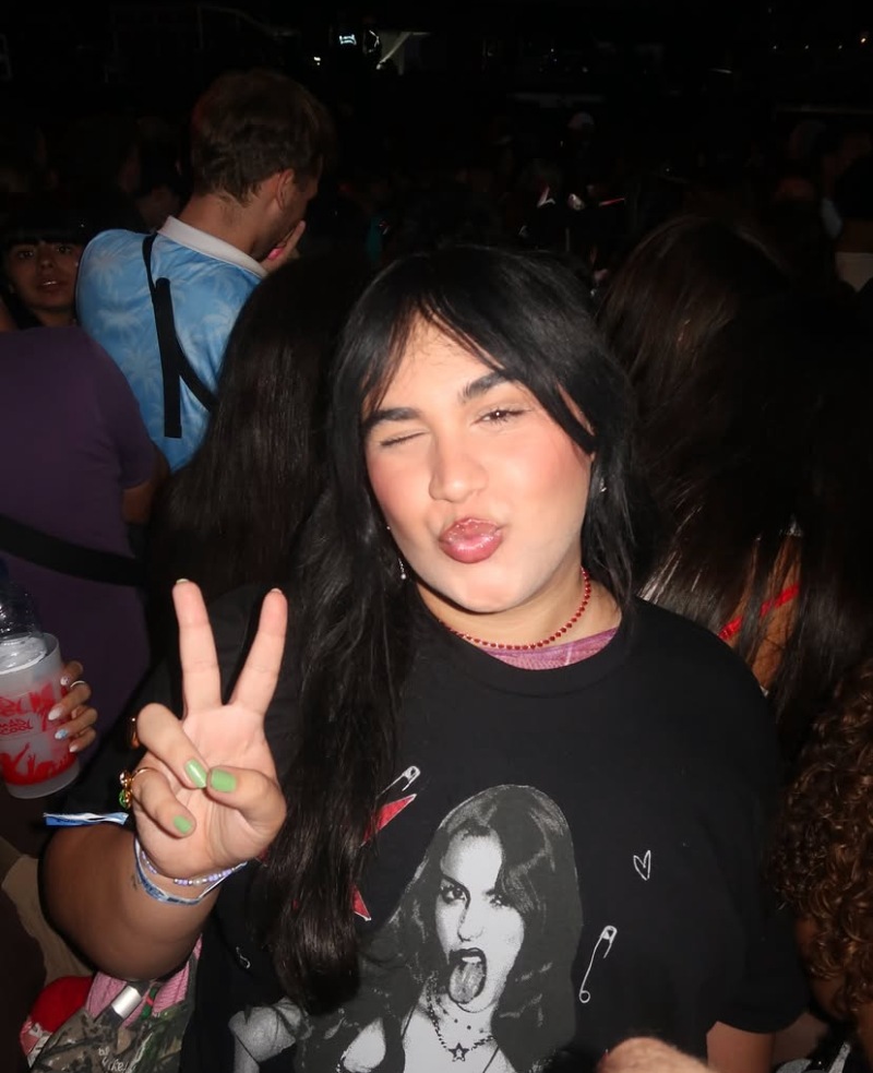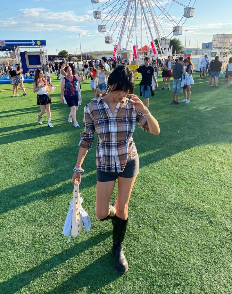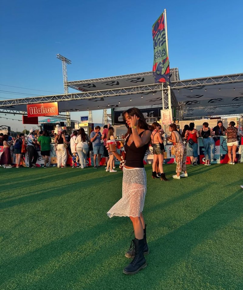 Finalizamos con este outfit de la chica que vimos tocando la guitarra en el stand de Johnnie Walker. Es de los más sencillos, aunque el moño alto y los mechones sueltos lo elevan a un conjunto top para ir a un festival. Es un buen ejemplo de que no necesitas ni brillos, ni flecos, ni prendas ajustadas para estar en la lista de los mejores looks de Mad Cool 2025.
