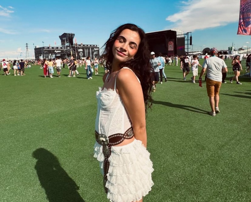 Mira es look de 10. Lleva un corsé con tirantes, falda con volantes, cinturón hippie y melena natural. Prendas muy sencillas que podemos usar en diferentes temporadas sin tener que guardarlas. Está muy bien tener buenos outfits, pero no podemos dejar de lado la atemporalidad y la reutilización de prendas para otros festivales. El look de Ani Romero es el mejor ejemplo de ello.