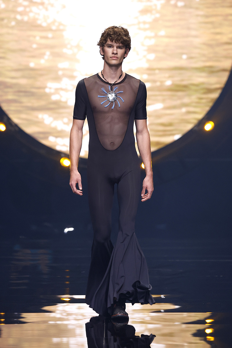 Arriba: Imagen del evento de presentación de Gran Canaria Swim Week 2025 @grancanariaswimweek / Abajo: Look de Arena Grande en la pasarela de 2024.