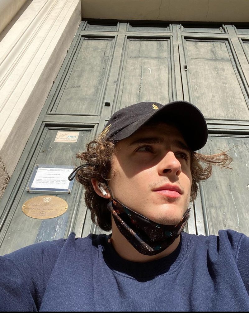 Imagen de Timothée Chalamet con un look desenfadado y muy copiado. Vía Instagram @tchalamet