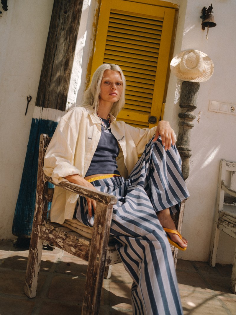Eme Studios Tabarca continúa con el viaje veraniego de sus últimas colecciones con una propuesta que reúne algunas de las últimas tendencias de streetwear en un armario que nos podemos poner en la playa: camisas de botones a rayas, chándal cortado como jorts y piezas statement con estampados más clásicos.