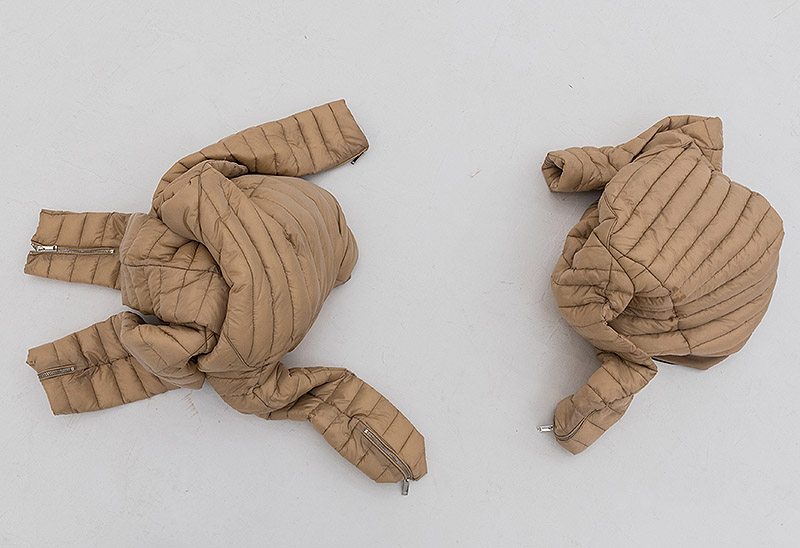Otras obras de la muestra se centran en la resignificación de la materia. En Abrigos para cuerpos sin forma de María Alcaide o Afloat de Daniel Hoëlz, “el gesto artístico se orienta hacia la resignificación de la materia”, extrayendo objetos cotidianos de su contexto y reinsertándolos en nuevas relaciones. Como señala la García Marqués: “Aquí, la permanencia se redefine no en términos de durabilidad, sino en la capacidad de un objeto para mutar y generar nuevas resonancias.” Jorge Morocho ahonda en la “fugacidad de las tendencias visuales y de consumo”, estableciendo “un diálogo entre lo efímero y lo simbólicamente perdurable”.