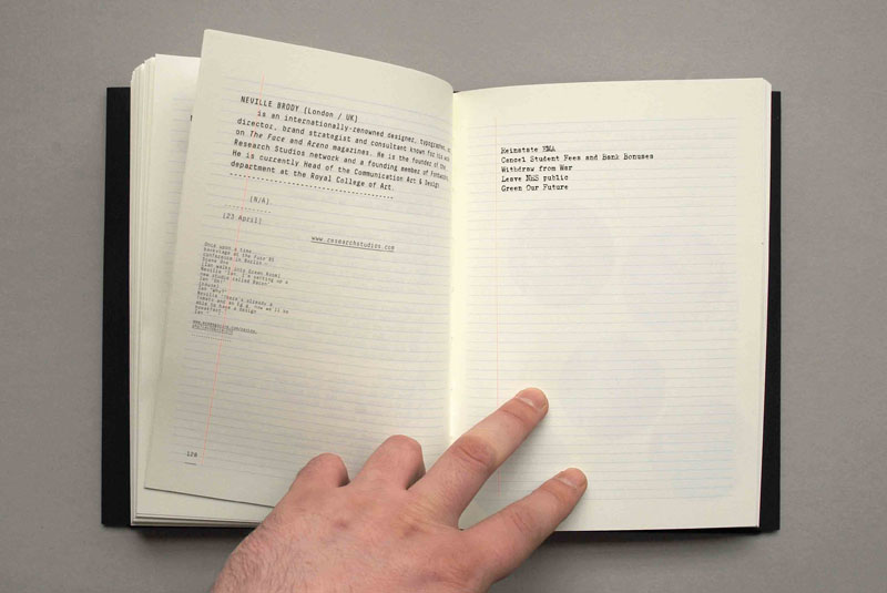 Algunos de los colaboradores que han participado en este libro: Adrian Shaughnessy, Adrian Sherwood / On–U, Clint Mansell / ex-PWEI, David Crow, Erik Spiekermann, Gelman, Graham Wood / ex-Tomato, Hamish Muir / ex-8vo, Ian Anderson / TDR™, James Goggin, Jarvis Cocker, Jim Fry (Pre-New / Earl Brutus), John Warwicker / ex-Tomato, Kid Acne, Liz Farrelly, Malcolm Garrett, Mark Stewart / The Pop Group, Matt Pyke / Universal Everything, Michael C. Place / Build, Neville Brody, Nick Bell, Nicole Jacek / Karlssonwilker, Paula Scher / Pentagram, Richard H. Kirk, Scott King, Sean Perkins / North, Steve Beckett / Warp, TADO, Tony Brook / Spin, Vaughan Oliver, Vince Frost … más otros 72!