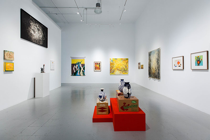 La misma variedad de perfiles se aprecia en sus obras: desde lienzos y esculturas a fotografías, pasando por piezas en papel… tanto figurativas como abstractas. Sobre todo, han querido apostar por la cerámica. “Para Lorena y para mí era muy importante que estuviera representada una forma de arte que necesita del fuego para existir”, cuenta Sarabia. Por ello, toda la muestra se articula en torno a tres piezas cerámicas del propio Sarabia que funcionan como la hoguera en torno a la cual se congregan el resto de artistas.